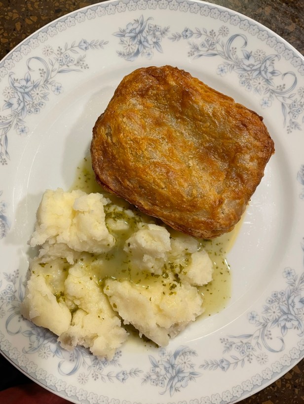 The pies are good, but the mashed potatoes are AMAZING! The best I’ve ever had – don’t know what makes them so good, they are just potatoes and milk. But, mmmm…. They come with a parsley liquor – tasty, green parsley sauce that brightens the heavier flavors of the pie and mash).