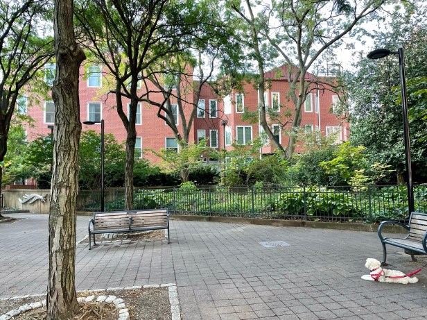 Our favorite is the hidden park off 17th (between Ranstead & Chestnut – entrances on both). This one is tucked away – shade, flowers and an adorable turkey head spout on the fountain):