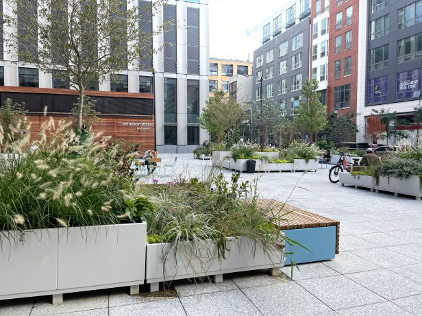 Louis Kahn Park – Small park with tables and benches at the corner of 11th & Pine:
