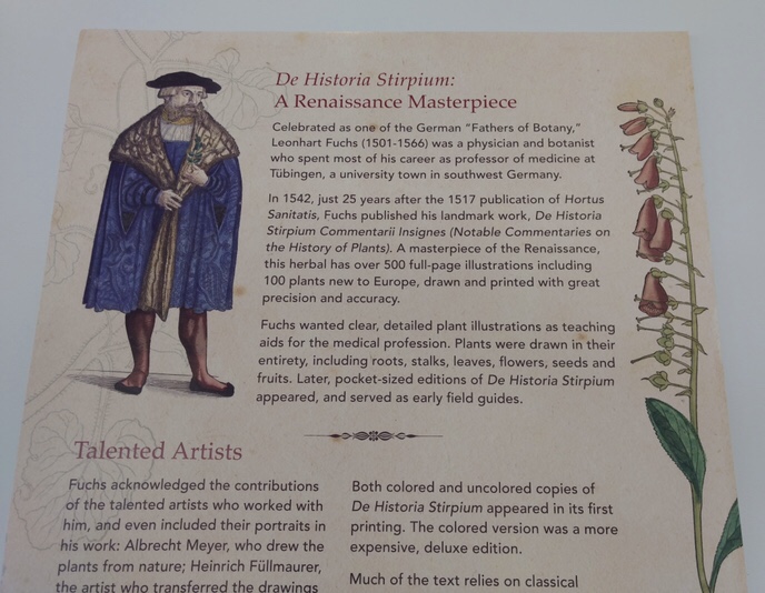 Another location to check out is the Philadelphia Horticultural Society’s McLean Library, located at 100 N 20th. Primarily a resource for members, they usually have a small (free) exhibit by the front doors on the first floor highlighting works from their collection, such as this 2017 display of the 2 oldest books in the collection, both 16th century herbals.