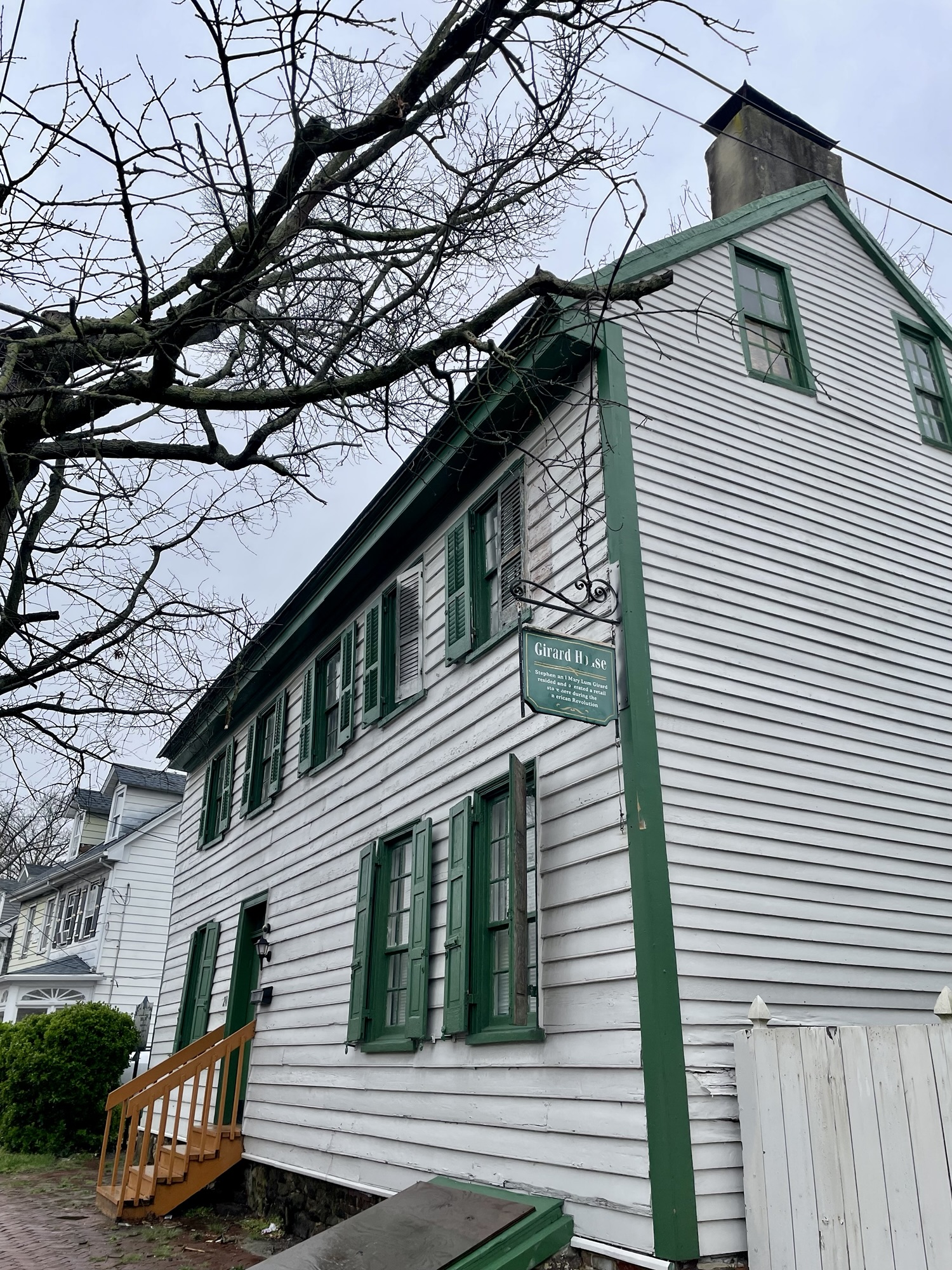 When Girard’s Philadelphia home was occupied by the British in 1777, he and his wife moved across the river to Mt. Holly. Their c.1770 house still stands at 211 Mill Street. Private.
