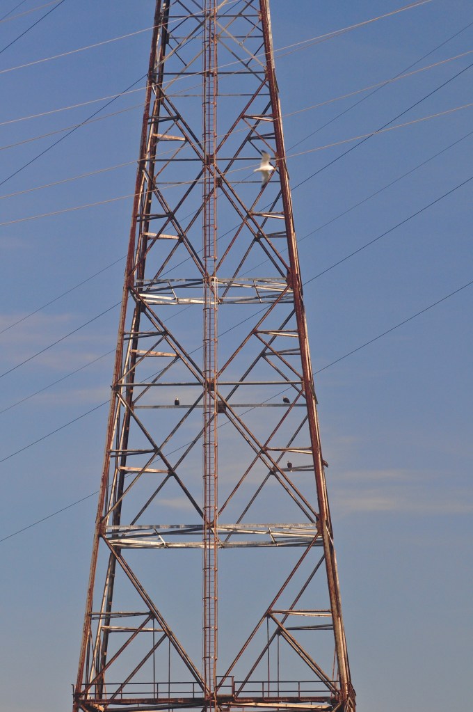 One of the best places on the east coast for almost guaranteed eagle spotting is the Conowingo Dam, located on the Susquehanna River about 15 minutes off 95, about 70 miles southwest of Philadelphia. From early November through late December, hundreds of eagles stop at the dam to fatten up during their winter migration. We saw about a dozen eagles during our 1 1/2 hour visit on December 15, 2020, including these 3 (high tension wires are apparently a good resting spot).