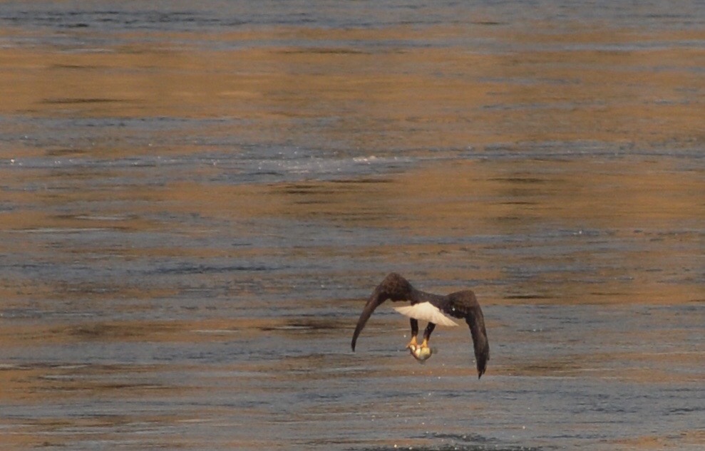 Fish are stunned as they get sucked into the turbines and then released downstream, making them easy pickings for the eagles (who, contrary to Franklin’s bad mouthing, do fish – although they will often steal fish from each other and other birds).