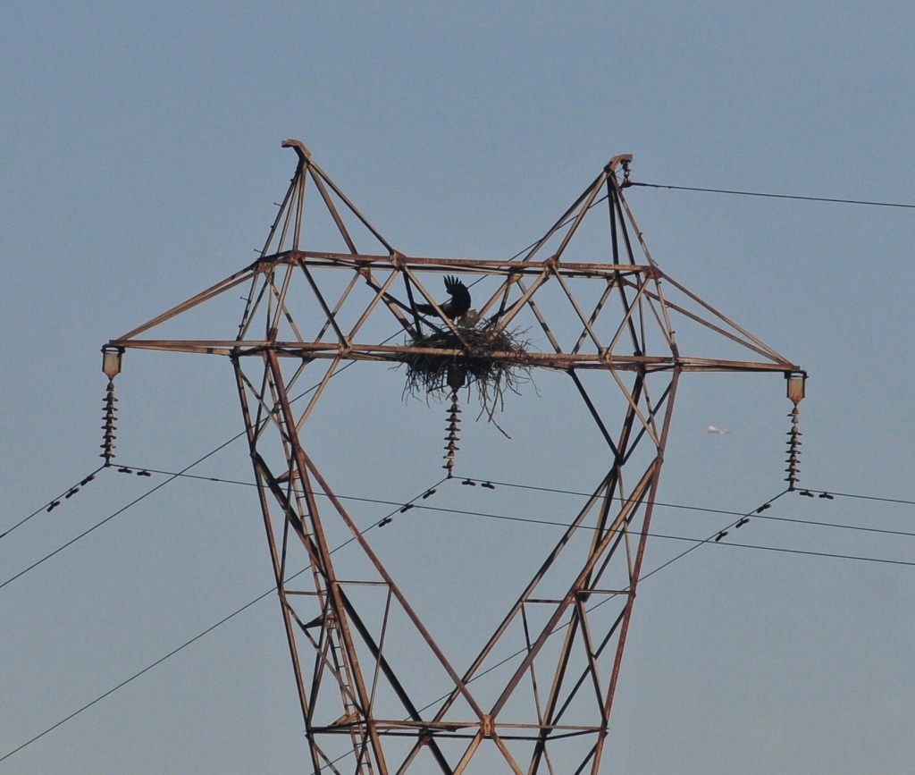 Although the majority of the eagles at the dam are winter migrants, we did spot this nest with an adult adding twigs, so there must be at least one breeding pair.