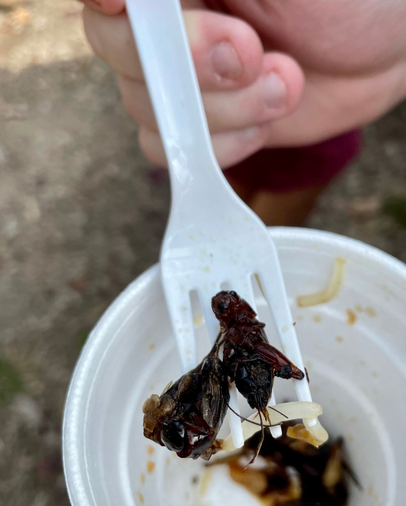 boiled chicken embryo (we all wimped out on these!), and spiced crickets (Erick tried these!),