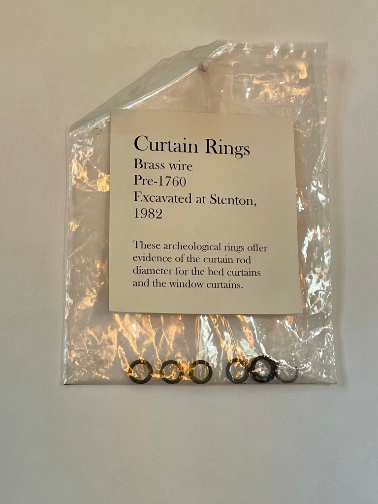 Stenton has been a museum for over 100 years, and during that time several archaeological digs and restorations have taken place. A 2017 restoration took the yellow lodging room back to its 1750’s splendor, using paint replication and re-created yellow wool textiles, as were described in a 1752 household inventory. A 1752 portrait of William Penn’s daughter-in-law, Lady Juliana Penn, provided the damask design. A local blacksmith fabricated iron curtain rods and brass rings, replicating those found during archeological digs at Stenton in 1982.