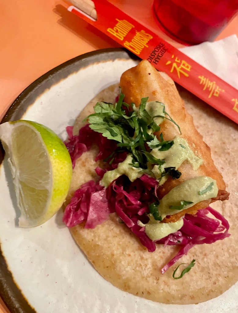 The food is a mash-up of Chinese and Mexican, loosely based on the food of Mexicali, which has the largest Chinatown in Mexico.