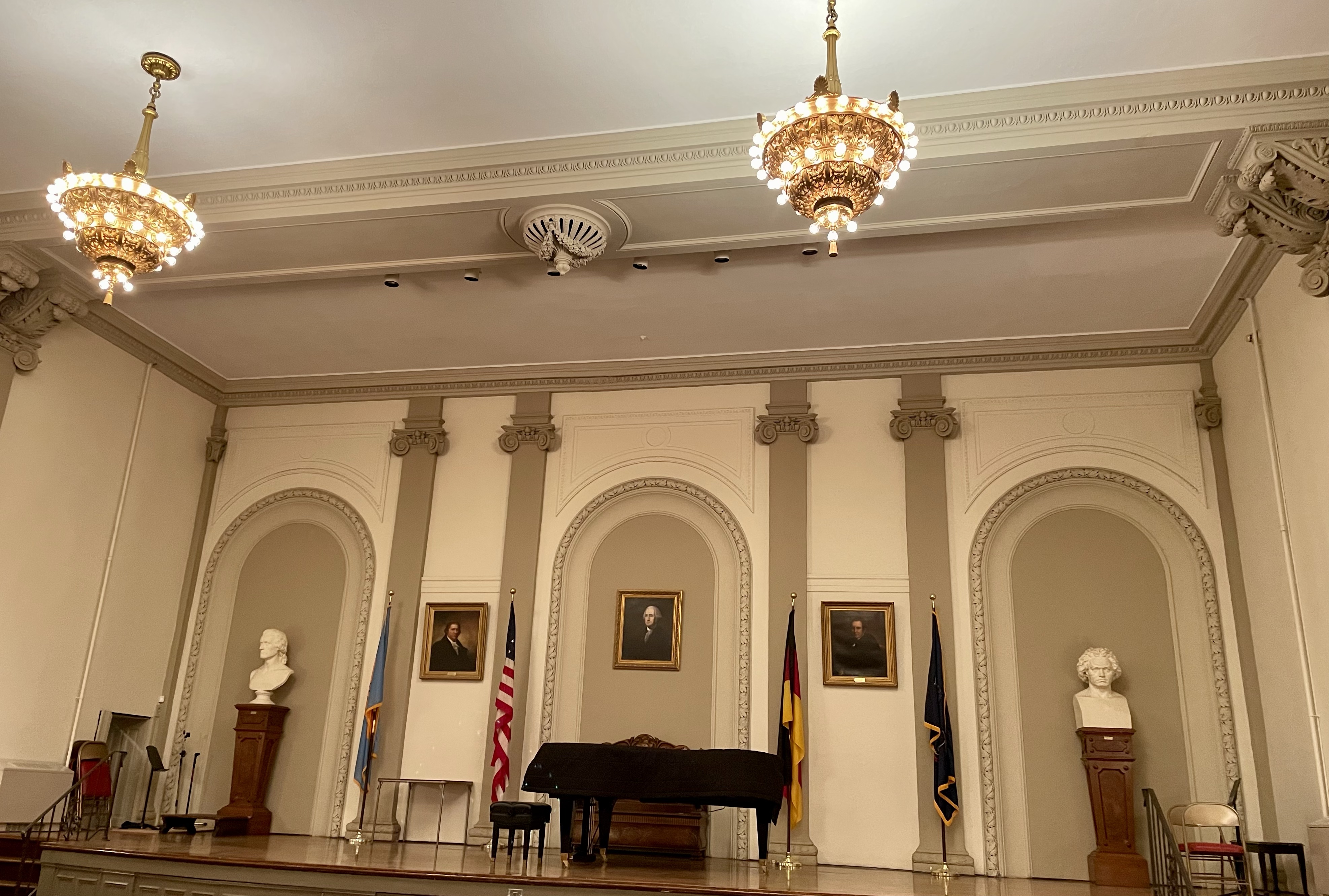 One of the most interesting aspects of our tour of the German society was a discussion by our guide on how the role of immigrant societies has changed. Earlier in their history, the function of these societies was to help immigrants assimilate into American life – providing English language and cultural lessons, banking, and other such necessities (see The Italian, Italian Market post for images of Philadelphia banks set up for Italian immigrants). Today, European immigrants rarely need these kinds of services, so the German society’s function has taken on the role of promoting German culture through events such as concerts, German language lessons, Bierfests, etc..