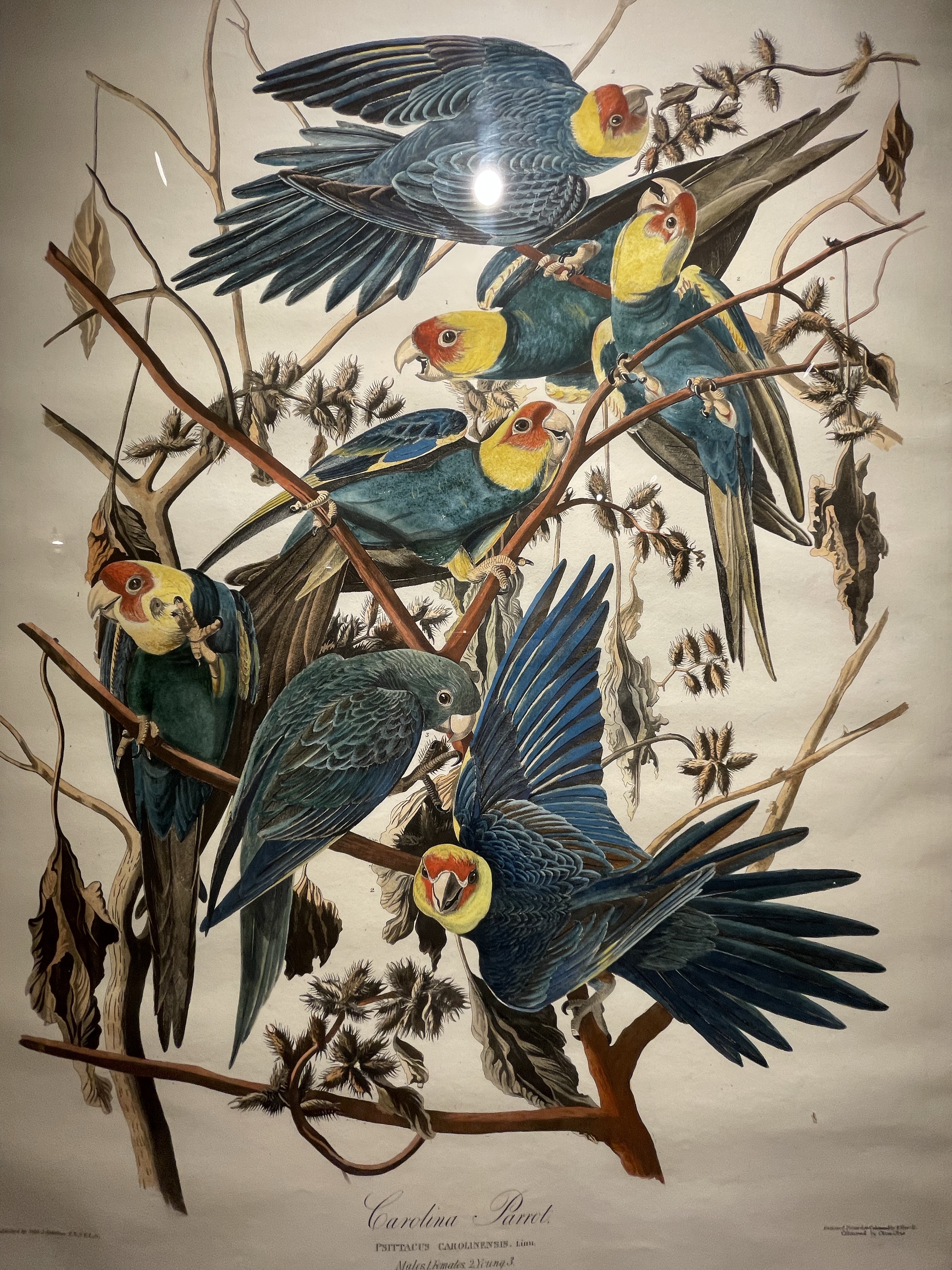 Audubon only lived at Mill Grove for 2 years, before heading west to Kentucky and developing his “American frontiersman” persona. Here he began work on “Birds of America,” his project to paint every native, North American bird. In the quest, he discovered 20+ new species, although 5 species (the Carolina parakeet, passenger pigeon, Labrador duck, great auk and pinnated grouse) are now extinct and one, the Eskimo curlew, hasn’t had a confirmed sighting since 1963, and one (the Bird of Washington) was most likely a deliberate fake.