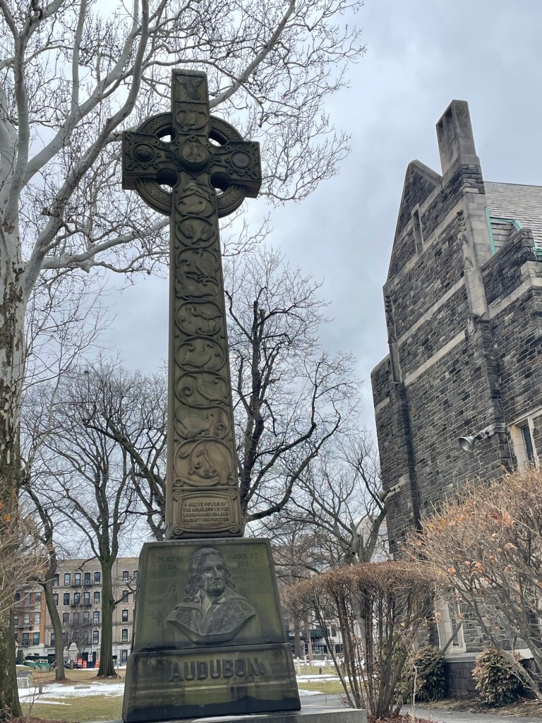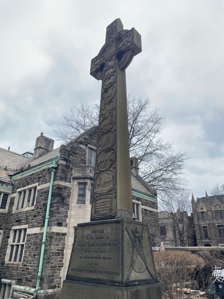 Audubon died in New York City and was buried in Trinity Church Cemetery, where 40 years after his death his simple grave was replaced by this elaborate white stone cross featuring carved birds on one side and mammals on the other. Keep an eye out for the bird murals in the surrounding neighborhood celebrating his legacy.