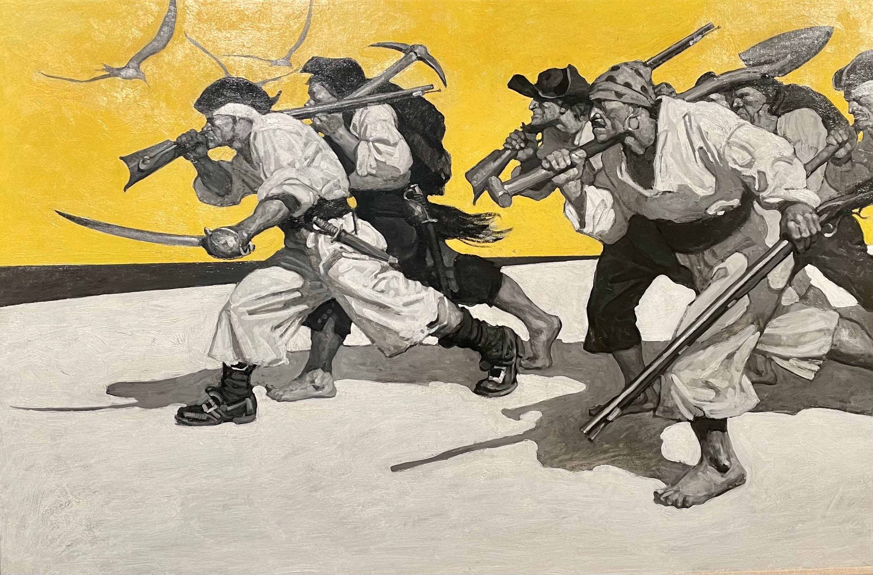 The family’s patriarch, NC, moved to nearby Wilmington to study with Howard Pyle (Philly (area) Artists: Howard Pyle & American Illustration), one of America’s premier illustrators. Soon NC became as popular as his mentor, going on to illustrate over 110 books. With the proceeds from one of his most popular, Treasure Island, he purchased 18 acres in Chadd’s Ford in 1911 to built his home/studio. He lived and worked here until his death in 1945 when his car was struck by a freight train.