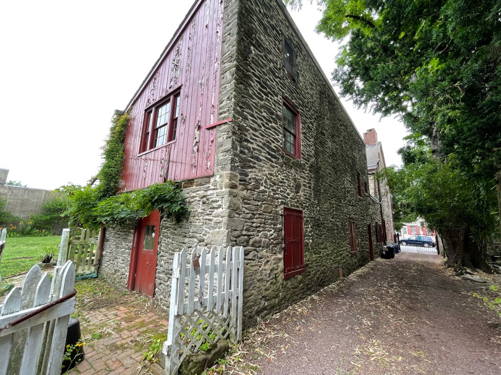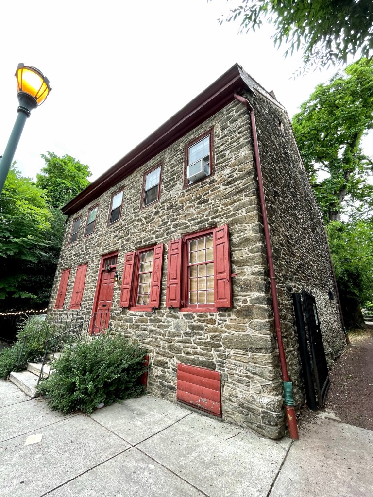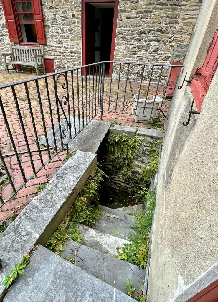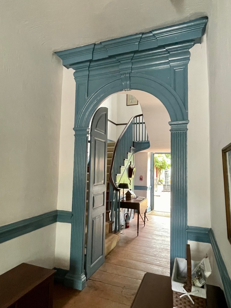 The house was originally built in 1744 as a summer home for Philadelphia wine importer John Wister – and later became the family’s permanent home following the 1793 yellow fever outbreak in Philadelphia. Unlike the nearby Georgian style estates of Clivedon (Cliveden: Colonial Bullet Holes & a Fabulous Retro Kitchen) and Stenton (Stenton: The Story of an Influential Colonial Family), the Wistar house was built in a Pennsylvania German style, not so symmetrical – and with a Dutch door entryway.