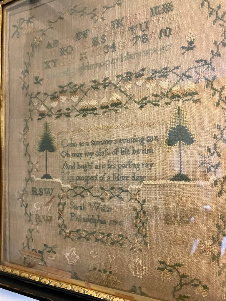John’s granddaughter, Sally (1761-1804), who along with the rest of the family left the house before the Battle of Germantown, wrote a diary documenting this period from a teenaged girl’s perspective – and like most teenage girls, it is mostly concerned with gossip about the army officers she meets. The original is in the collection of the Historical Society of Pennsylvania. Her silhouette and several of her samplers can be seen in the room that was once her bedroom.