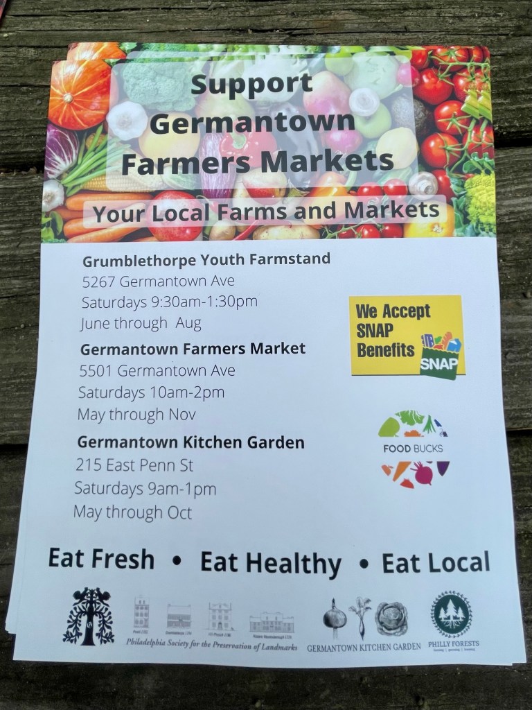 One of the questions that faces historic sites like Grumblethorpe, is how to keep relevant today, especially in a city like Philadelphia that has so many colonial sites. Grumblethorp has done this by developing a program, the Grumblethorpe Youth Volunteers, who (among other things) work with a resident farmer to grow produce in Grumblethorp’s extensive gardens and run a weekly community farmstand as paid staff.