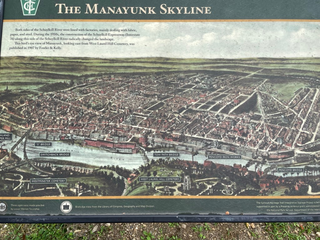 Cynwyd Heritage Trail: for great views over Manayunk, or cemetery explorations at West Laurel Hill (c. 1869), this former Pennsylvania Railroad bridge (now pedestrian only) crosses the river and continues 1.8 miles along the rail trail. Great explanatory signs detailing local history.