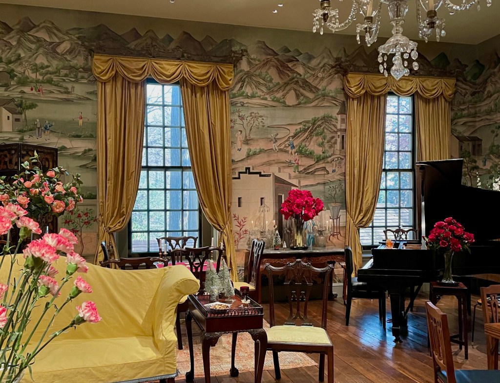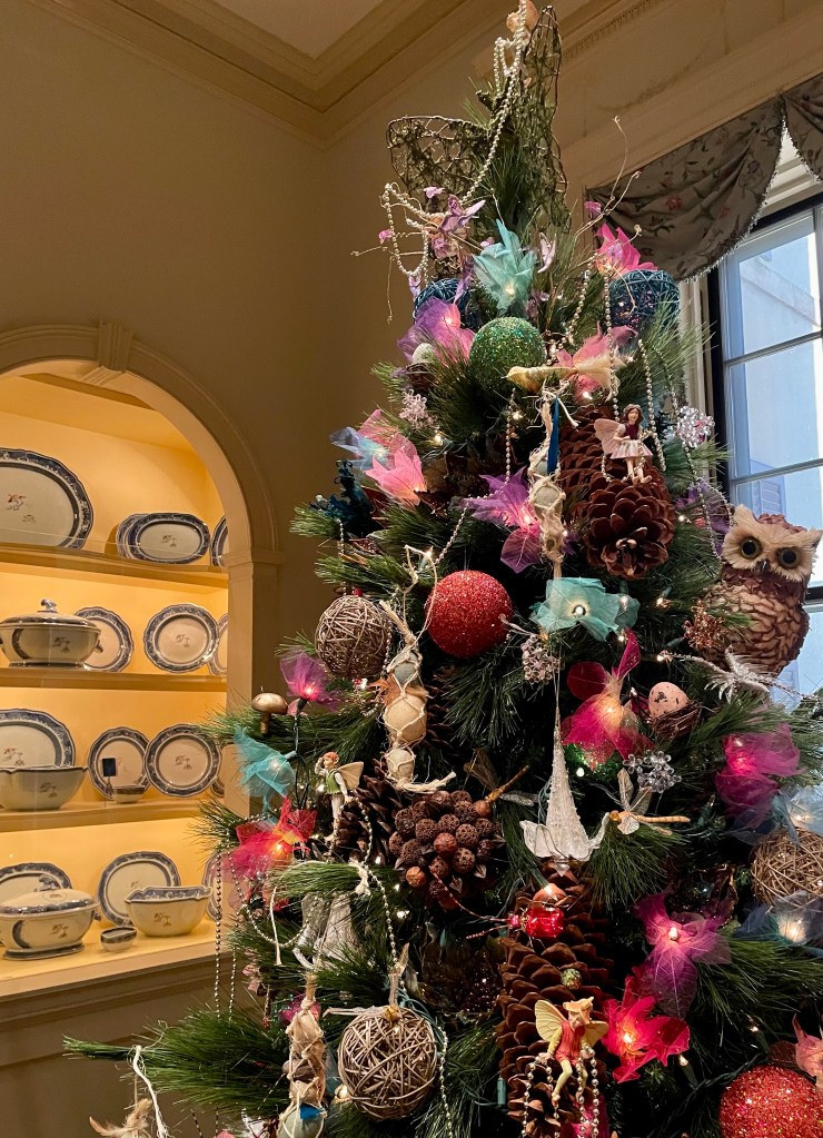 Christmas is celebrated each year with a self-guided tour through the house, with antique Christmas displays, plus themed trees. 2022’s theme was trees of the White House to go along with the Jackie Kennedy exhibit.