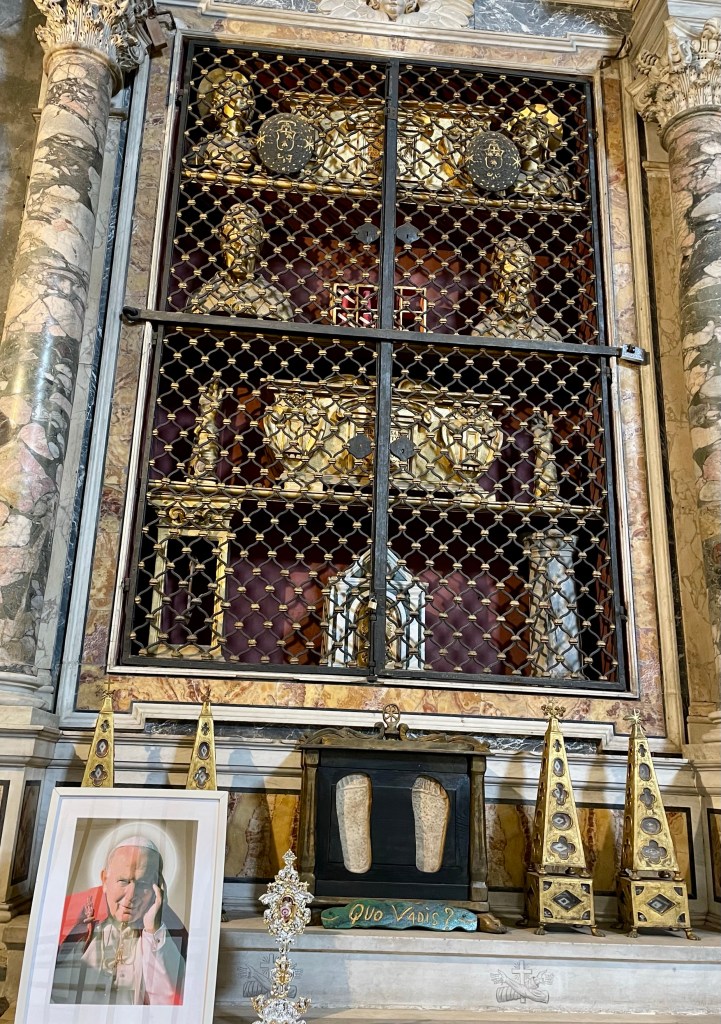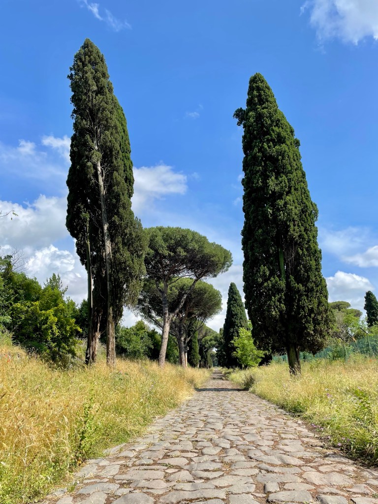 The first 2 miles of the road after the Roman gate are heavily trafficked, so it’s best to start your visit at one of the catacombs. We chose the Catacombs of Saint Sebastian, where you can tour both the underground Christian burial tunnels and a later church that houses the tomb of Saint Sebastian and one of the arrows that shot him (check out the amazing carved wood ceiling!). They also have a nice little cafe for drinks and snacks.