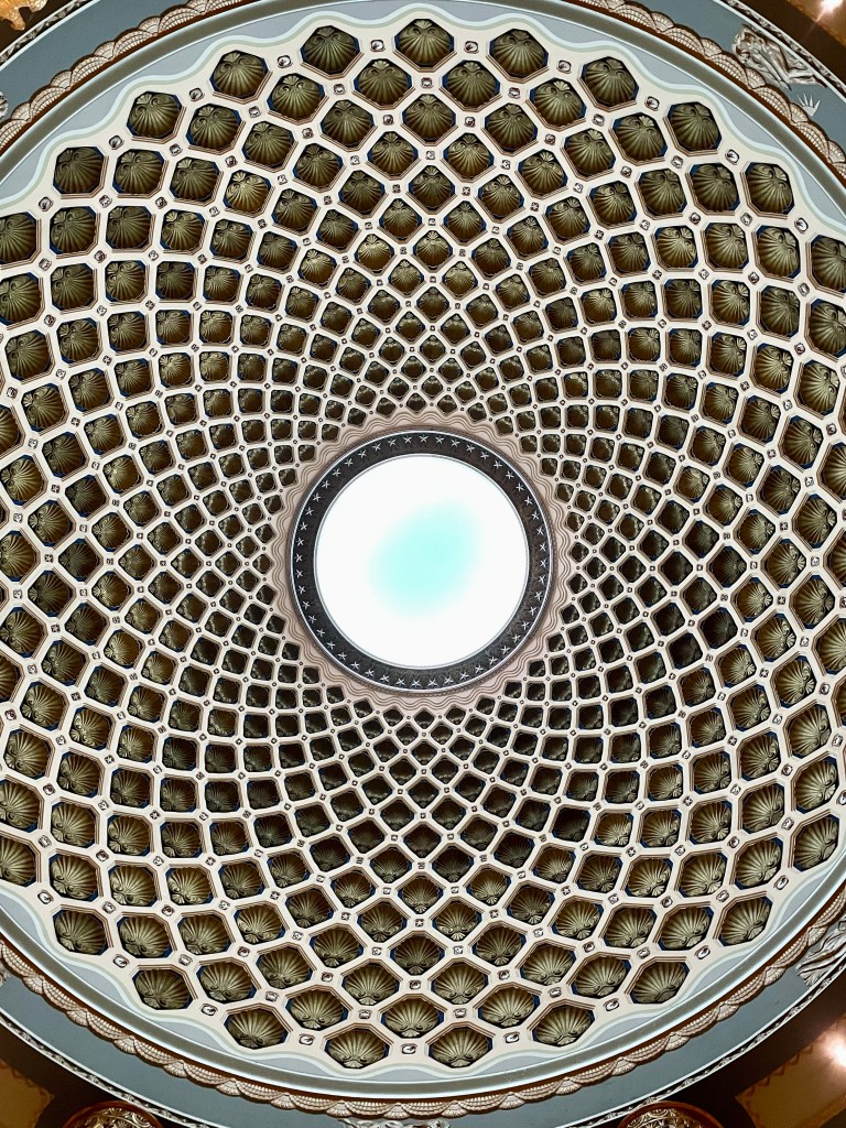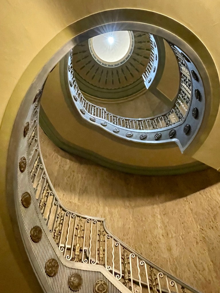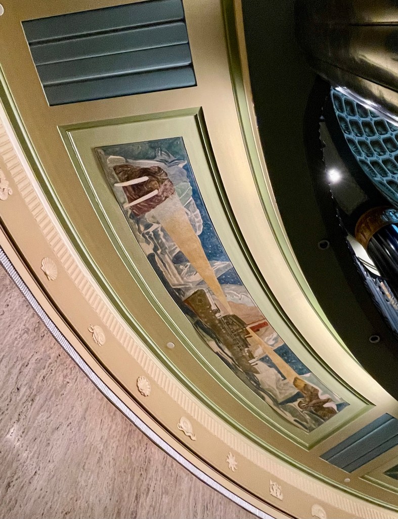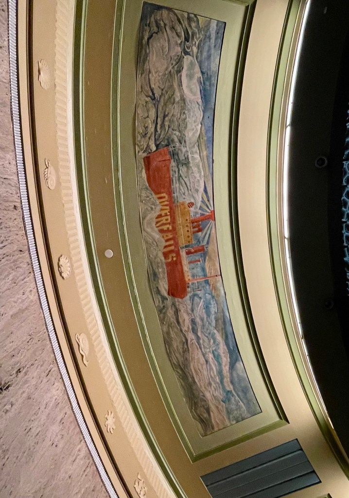 Surrounded by all that red brick, the 1932-34 Art Deco Customs House stands out. Built as part of the Works Progress Administration’s economic recovery plan, the exterior aluminum decoration and interior murals depict scenes of US commerce. You have to first go through security, but are welcome inside to see the “countless crustaceans” and other scenes of commerce decorating the interior murals, staircases, and dome.