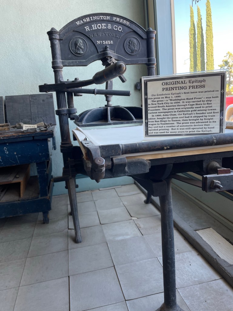 The building houses original equipment, newspapers and photographs, including a depiction of the paper published about the inquest following the infamous gunfight at the O.K. Corral.