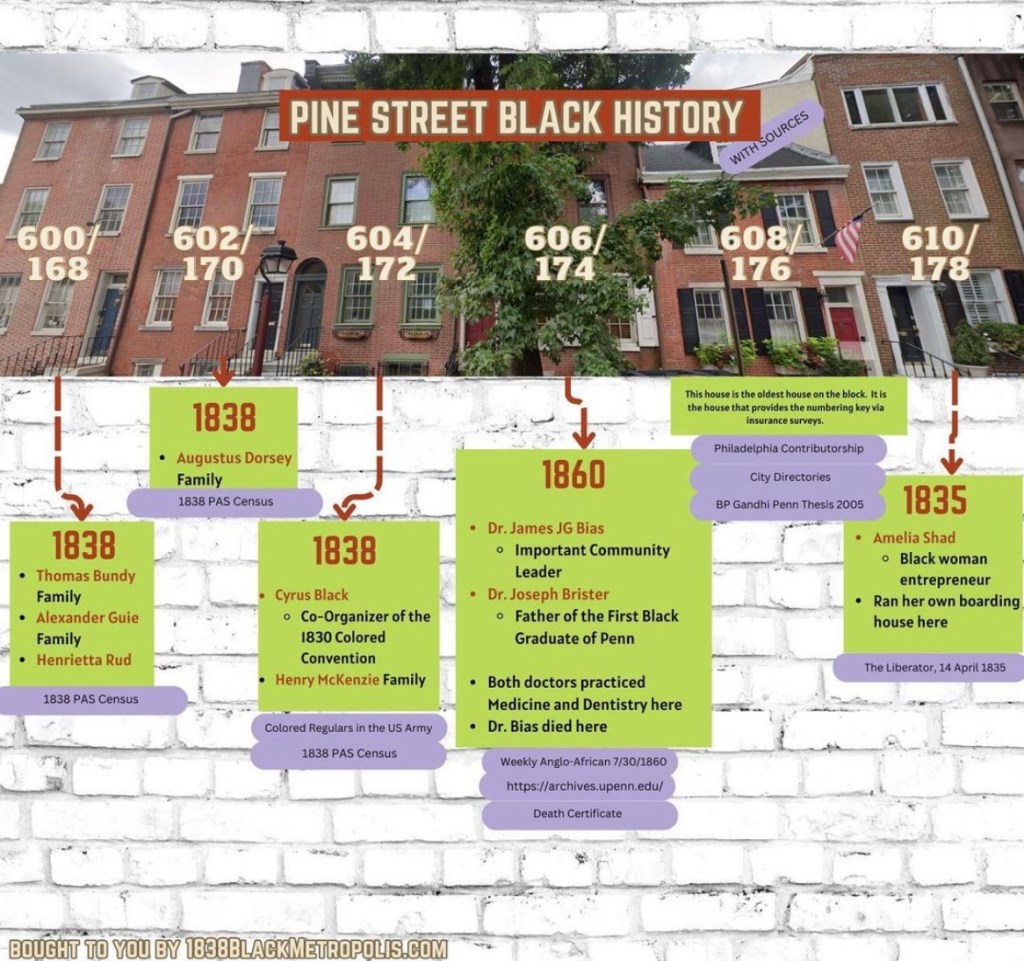 The 1838 Black Metropolis project began with a copy of an 1838 census funded by the Pennsylvania Abolitionist Society. Using this and a variety of other primary sources, these stories are being brought back to life on a website that includes self-guided walking tours (and occasionally in-person tours – follow on social media for more information).