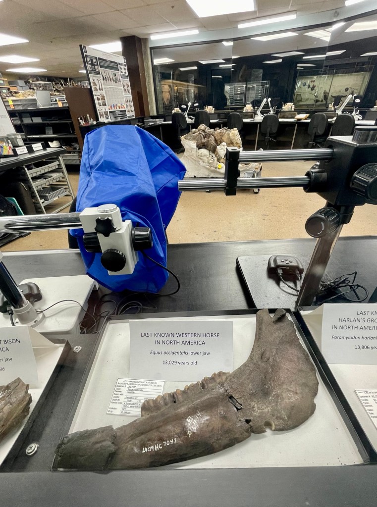 Excavation is still ongoing, and you can see paleontologists at work in the lab, along with a large chunk of fossil-filled asphalt.