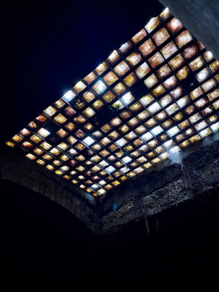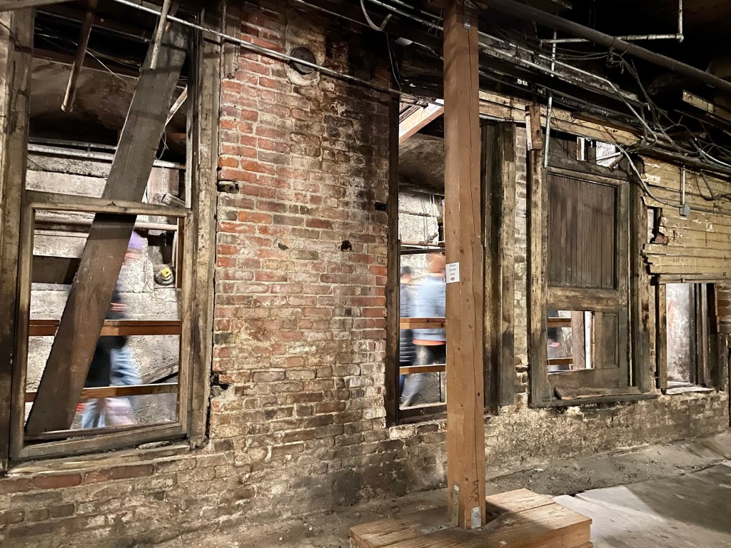 Our first stop took us down into an original ground floor room where you could see through the original street level windows before we exited out onto a now underground sidewalk. When these buildings were being reconstructed, merchants and landlords knew that the ground floor would eventually be underground and the next floor up would be the new ground floor, so there is very little decoration on the doors and windows of the original ground floor.