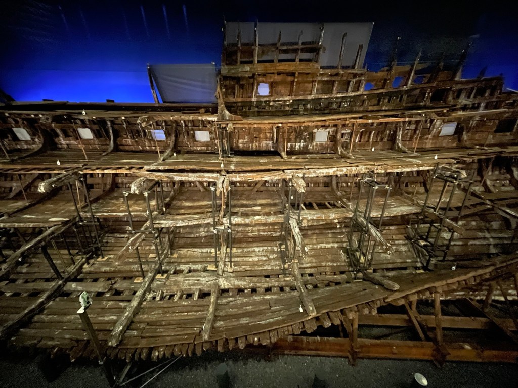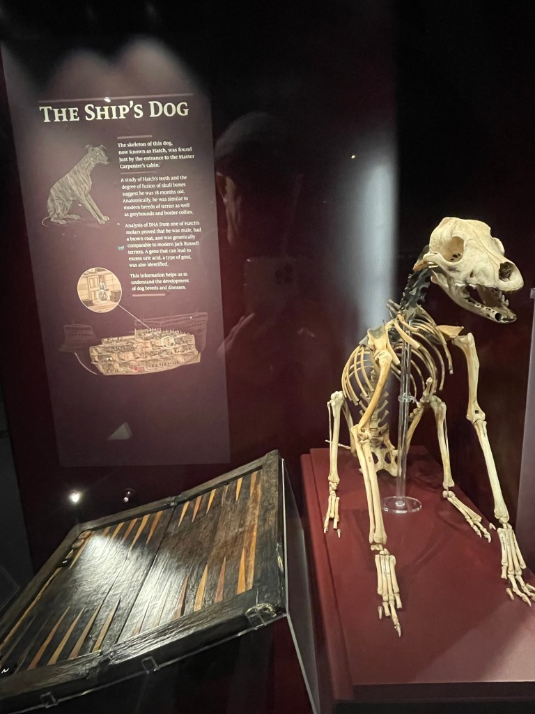 Archaeologists were able to use location found on the ship and physical injuries to help identify likely careers of several of the other skeletons. Their stories are in displays throughout the museum, which is designed to give a real sense of the ship before it sunk. The display halls run parallel the ship, with each display lining up with its location on the actual ship (visible on the opposite side). Digital displays light up the ship periodically, showing images of the crew at work. The perpendicular hallways display additional artifacts, and provide more detail about the ship and its crew.