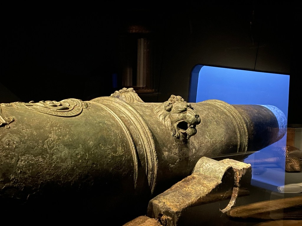 The guns themselves were also impressive. A 1546 inventory lists 39 large guns on board, including this one with the beautiful lion’s heads and Tudor rose on top.