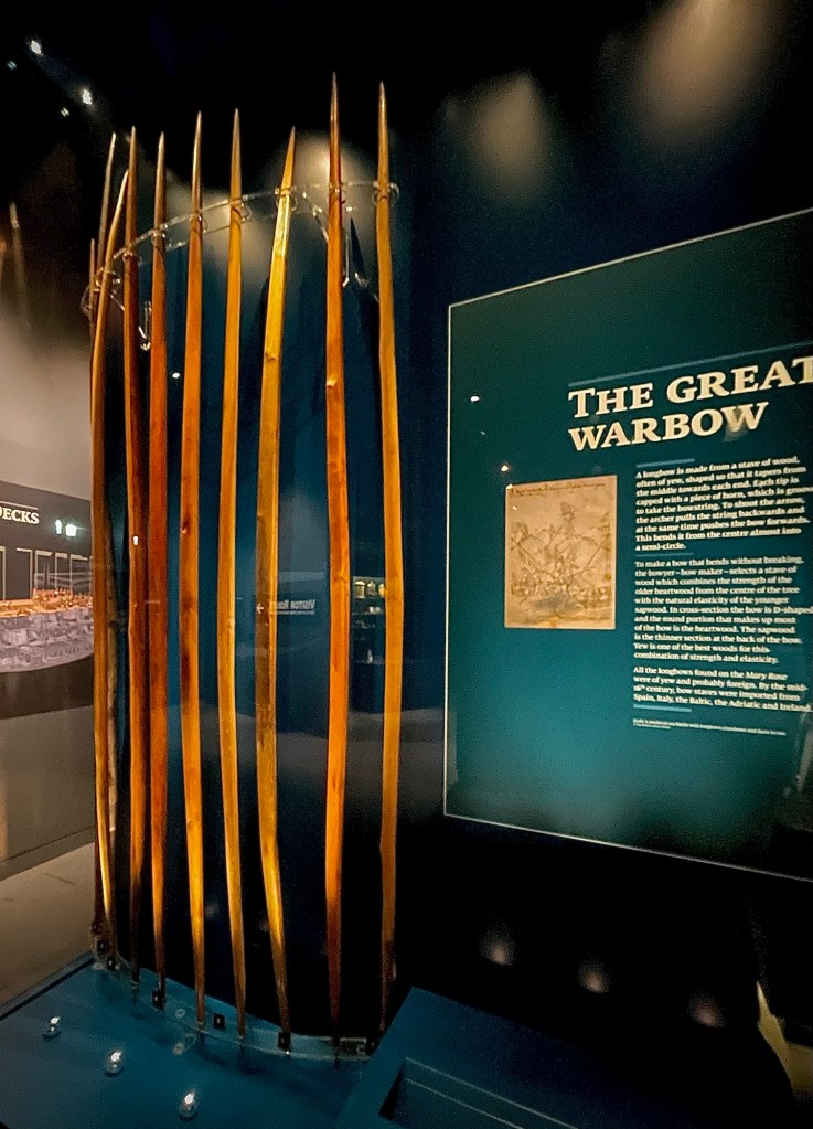 Another favorite display was of the archery weapons. Medieval English archers were famed for their skill with the longbow, and although gunpowder weapons were eclipsing these at the time of the Mary Rose’s sinking, 172 yew longbows and over 2,000 intact arrows were recovered, making this the only example of a precisely dated archery collection in the world.