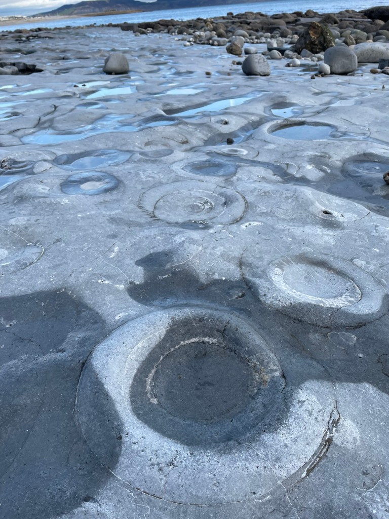 For a truly unique experience take a short walk along the beach west of town to Monmouth Beach and its amazing ammonite pavement, with hundreds of embedded fossils visible around low tide.