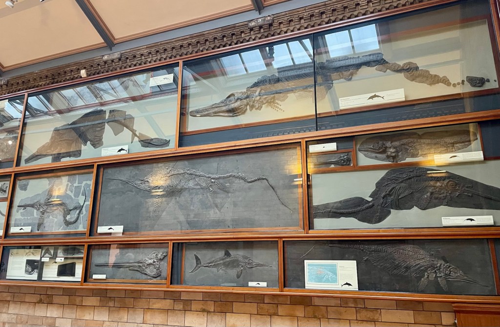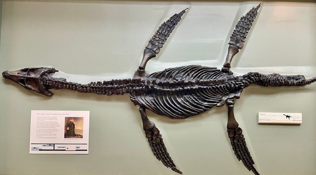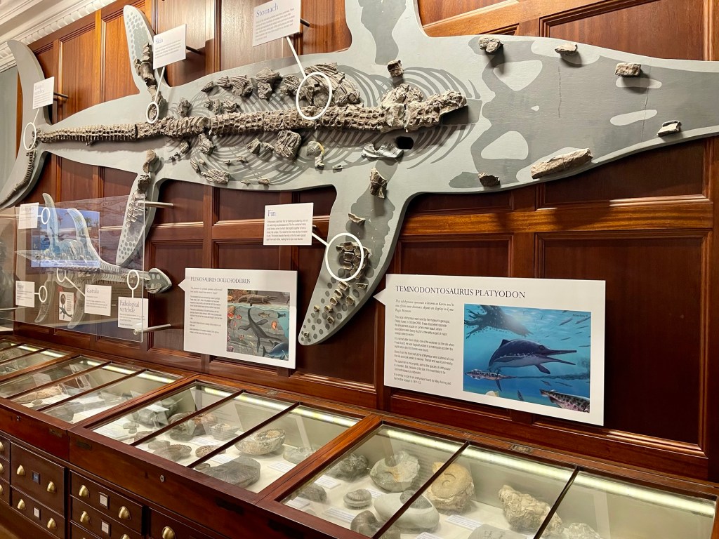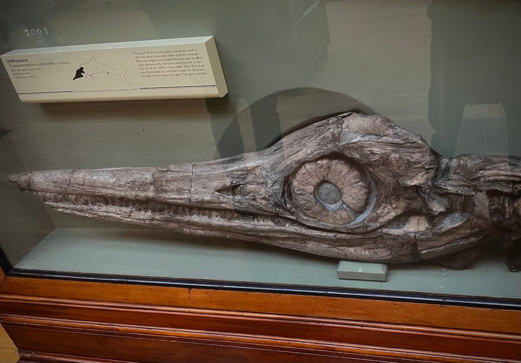 Seeing the actual fossils collected by Mary requires a visit to the Natural History Museum in London, where many of the specimens collected by her now live. Unfortunately, the glass covers make photos difficult, so my best ichthyosaur fossil photo is not actually one of Mary’s.
