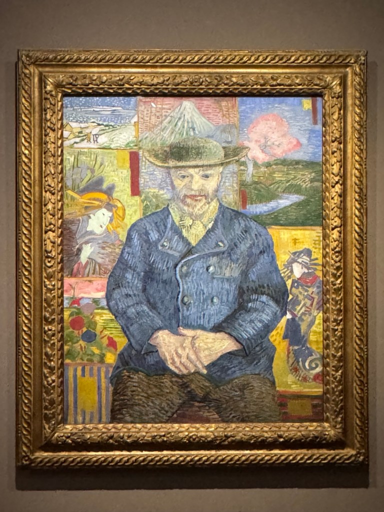 While in Paris, van Gogh began collecting (and occasionally painting) Japanese prints. This painting and a selection of the prints and illustrations he collected are on display at the Van Gogh Museum in Amsterdam.
