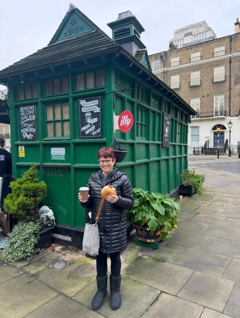 Grab a bacon roll and tea from a cab shelter. Russel Square (1897):
