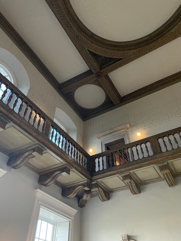 The 17th century Queen’s House in Greenwich is the country’s first truly classical building, and today displays the National Maritime Museum’s collection of paintings, including several relating to these Dazzle painted ships. On view during our 2024 visit were several paintings by Wilkinson: