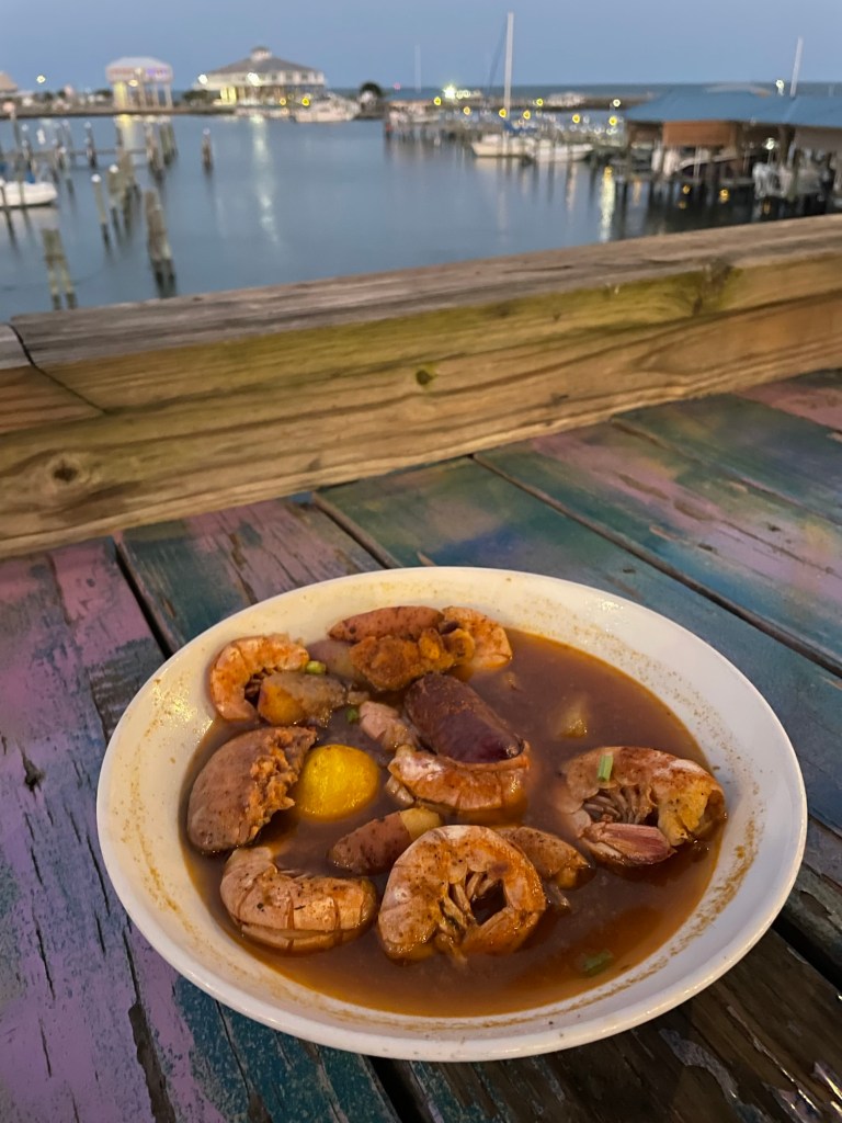 Of course, the best way to appreciate the region’s abundant seafood is at the table. While I didn’t complete Bubba’s list, I did manage to eat shrimp gumbo, sautéed, deep fried, boiled, with grits, and even grilled over a potato croquette.