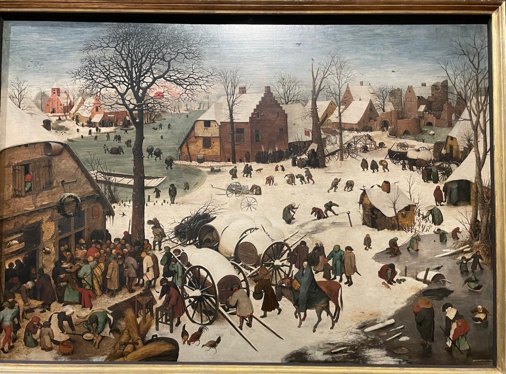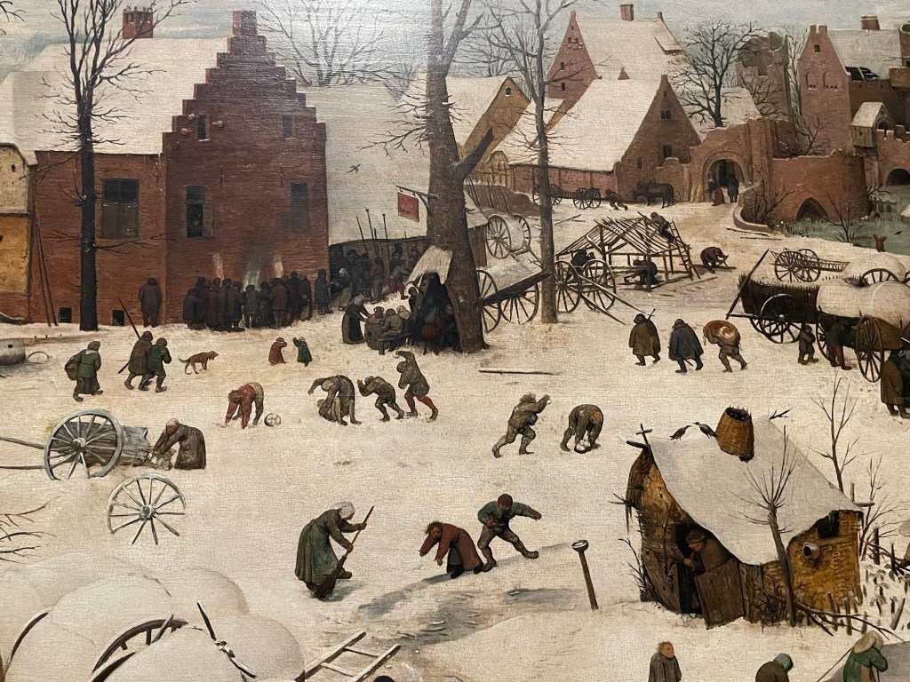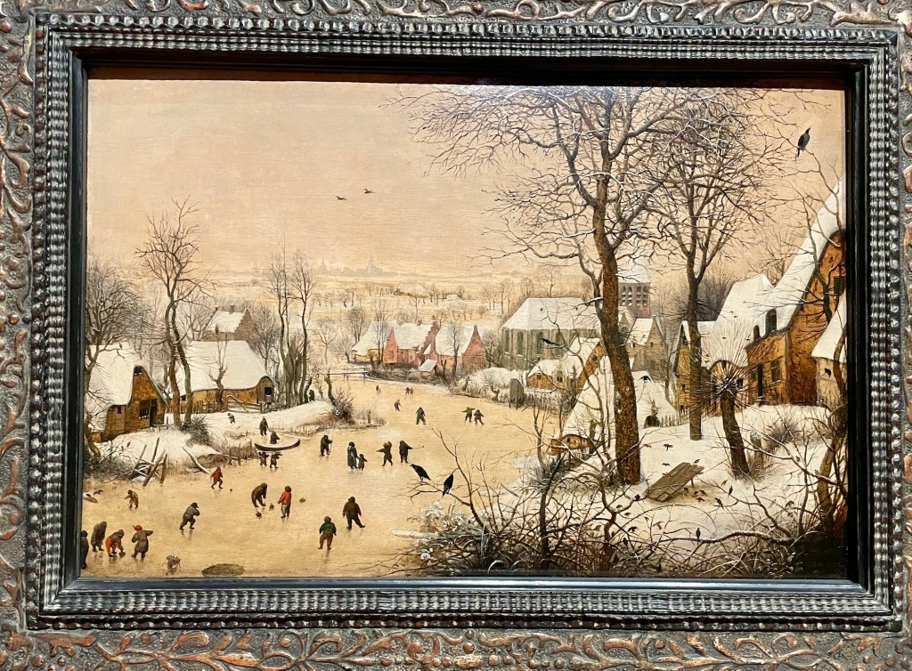 Bruegel the elder is generally credited with inventing the winter landscape, and his original of the magi in the snow is thought to be his earliest winter painting. The gallery also contains another of his winter scenes, “Winter Landscape with Bird Trap,” his most copied painting: