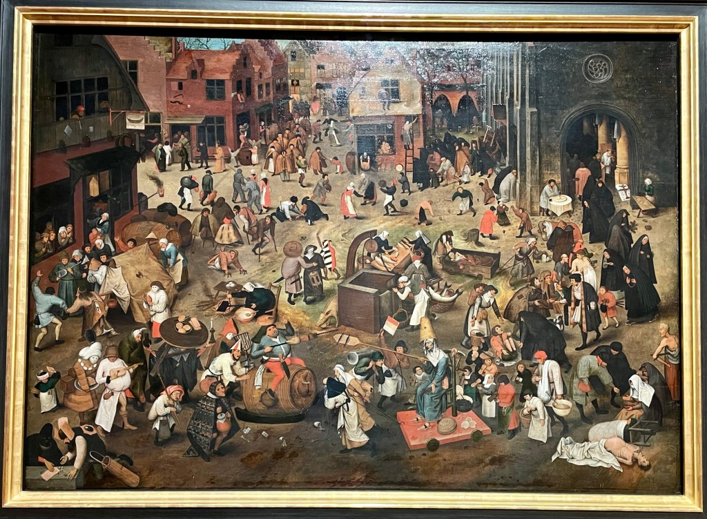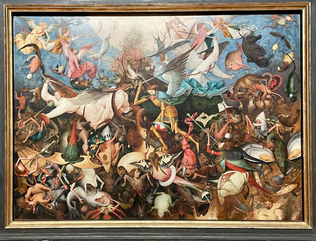 Also in the gallery are two of the fantastical religious scenes first popularized by Bosch, “The Fall of the Rebel Angels” by Bruegel and “Battle of Carnival and Lent,” by his son.