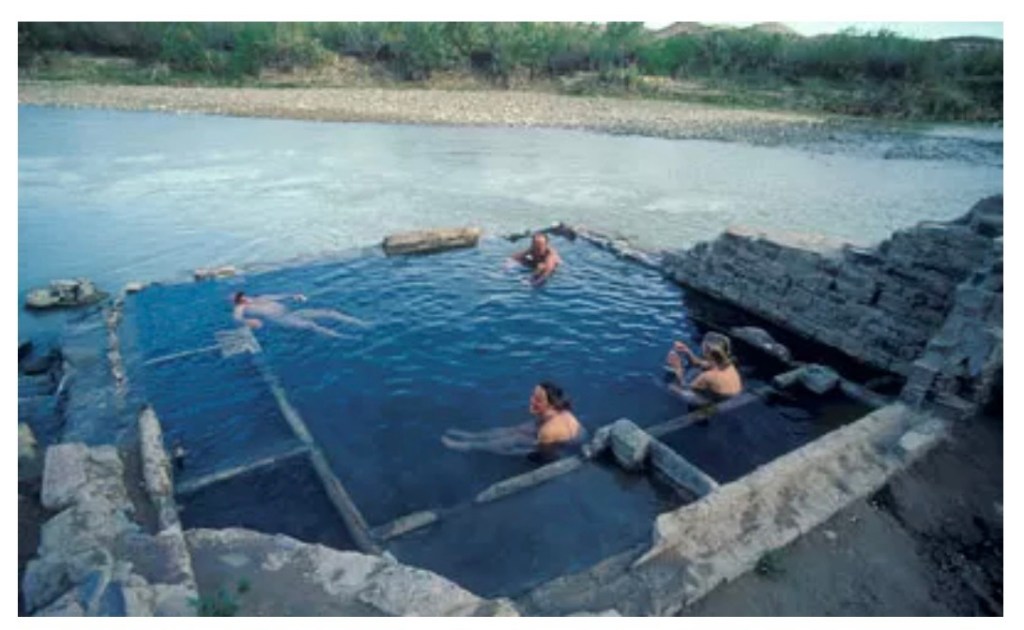 Then enjoying the 105 degree hot spring itself located in the foundation of a 1920s bathhouse jutting out into the Rio Grande. Somehow we forget to take photos, so this picture is from the park’s website.