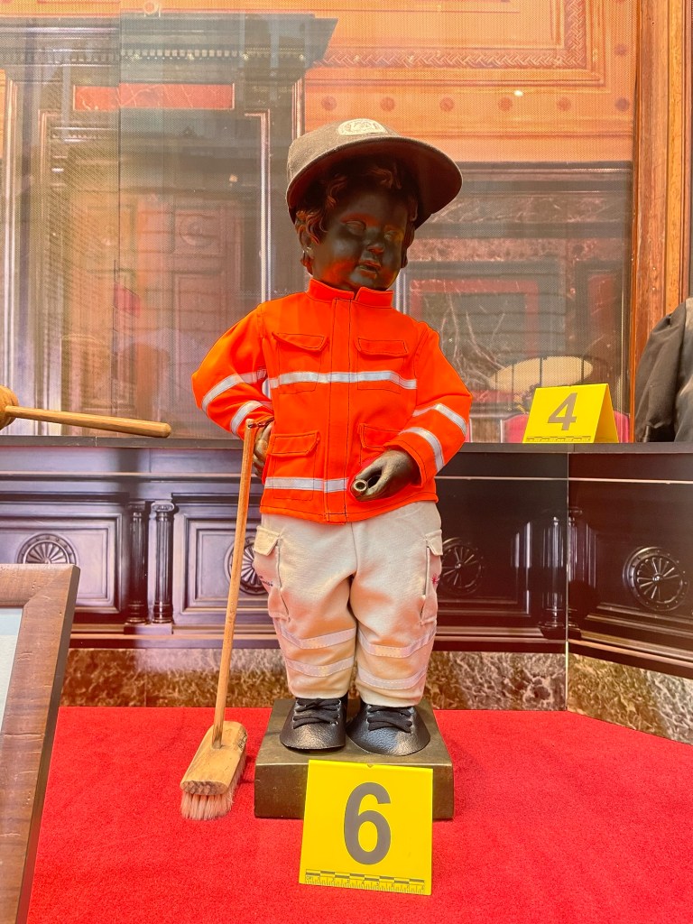 Since 1756 the statue has had his own official dresser to coordinate his wardrobe. Today he receives 20-30 new costumes a year ranging from famous people, ethnic and historic costumes, jobs and leisure activities, even dracula! The outfit changes daily according to a published schedule, which is posted on the railings around the fountain.