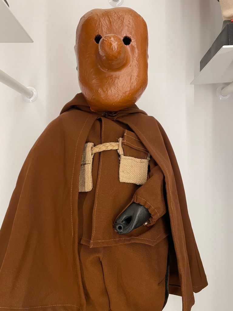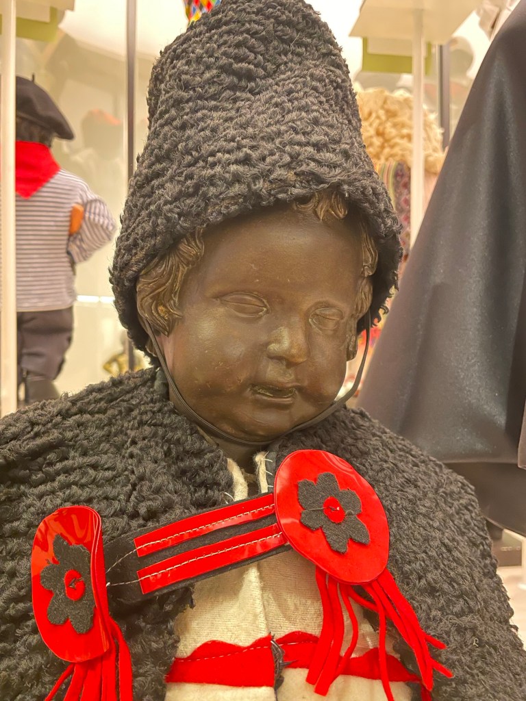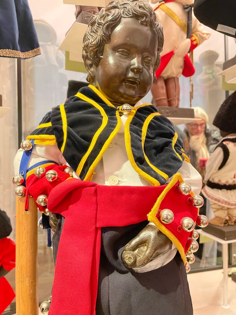 The early statue was replaced by today’s bronze version in 1620. He received his first official costume in 1698. The oldest in the collection today is this knight’s costume given by King Louis XV of France in 1747 as an apology after his soldiers stole the statue (replica on display at the museum).