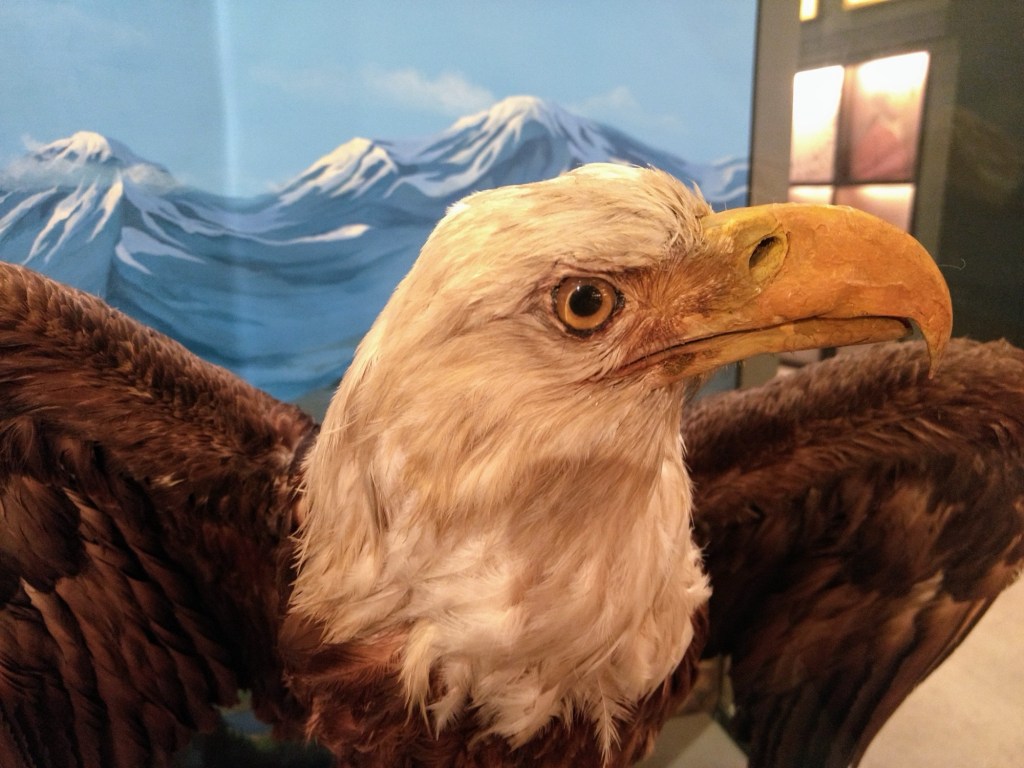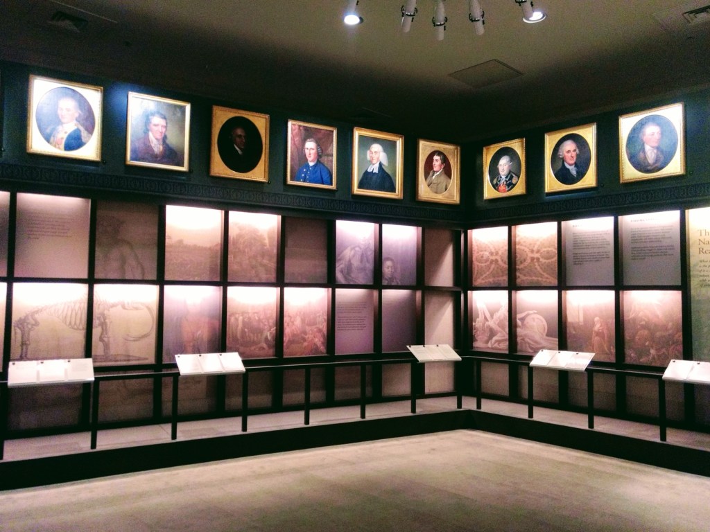 Although Peale’s Museum is long gone and the mastadon skeleton now lives in Germany, the museum has been partly recreated in Independence Park, complete with part of Peale’s original portrait collection and a few original exhibits, such as this taxidermy eagle, originally a Peale family pet (Secrets of Independence Park: Putting Faces to the Revolution – The Portrait Gallery).