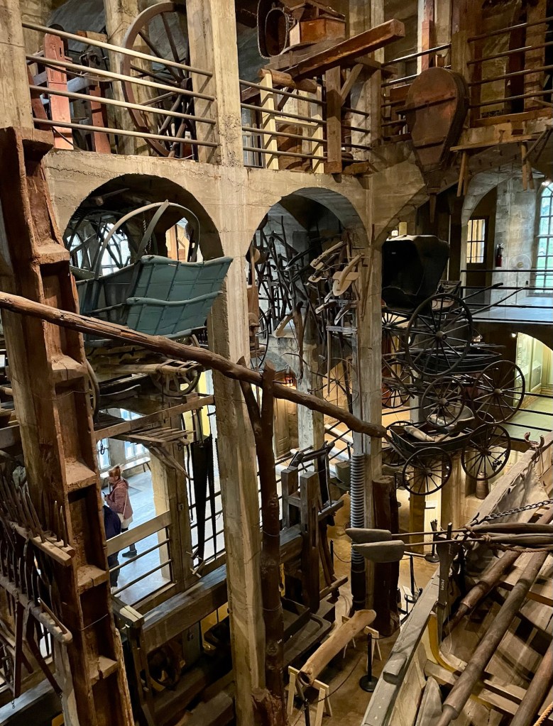 The Mercer Museum outside of Philadelphia is an early 20th century take, a labyrinth of a museum exhibiting over 40,000 pre-industrial American tools and artifacts collected in an effort to document a way of life that was rapidly being lost to industrialization (Philadelphia + Architecture = Arts & Crafts (Henry Mercer’s Tiles, Castle and Museum)).