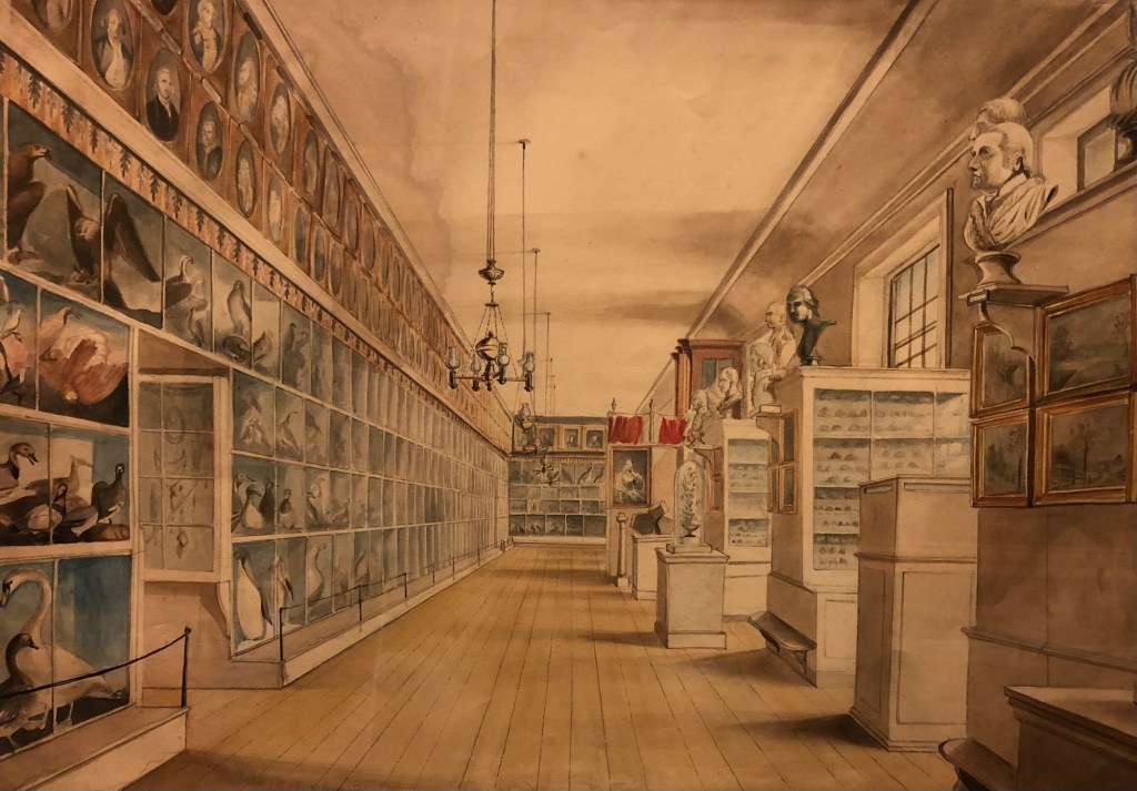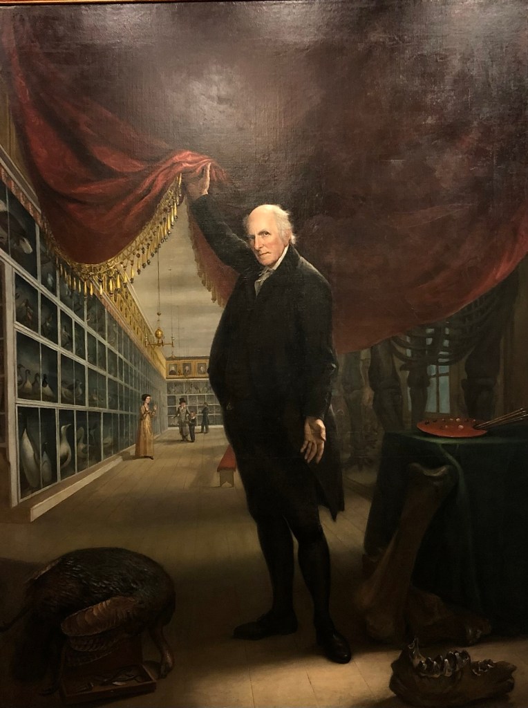With the dawn of the Enlightenment, the focus on reason changed these artistic jumbles to more ordered scientific collections. In 1784 the early American artist Charles Willson Peale opened his museum in Philadelphia, displaying his collection of portraits of important Americans. Within 2 years he’d added natural history displays, as well as a physiognotrace machine used to draw souvenir portraits.