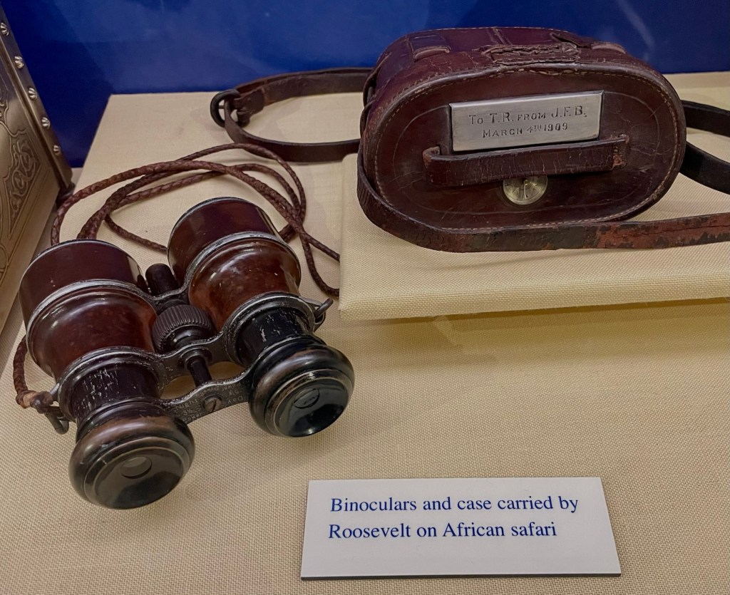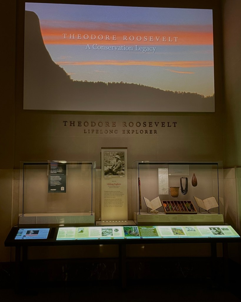 The cases contain original artifacts, including some of Teddy’s childhood taxidermy, his rancher buckskins, and items collected by his son on the Amazonian adventure that almost killed him.