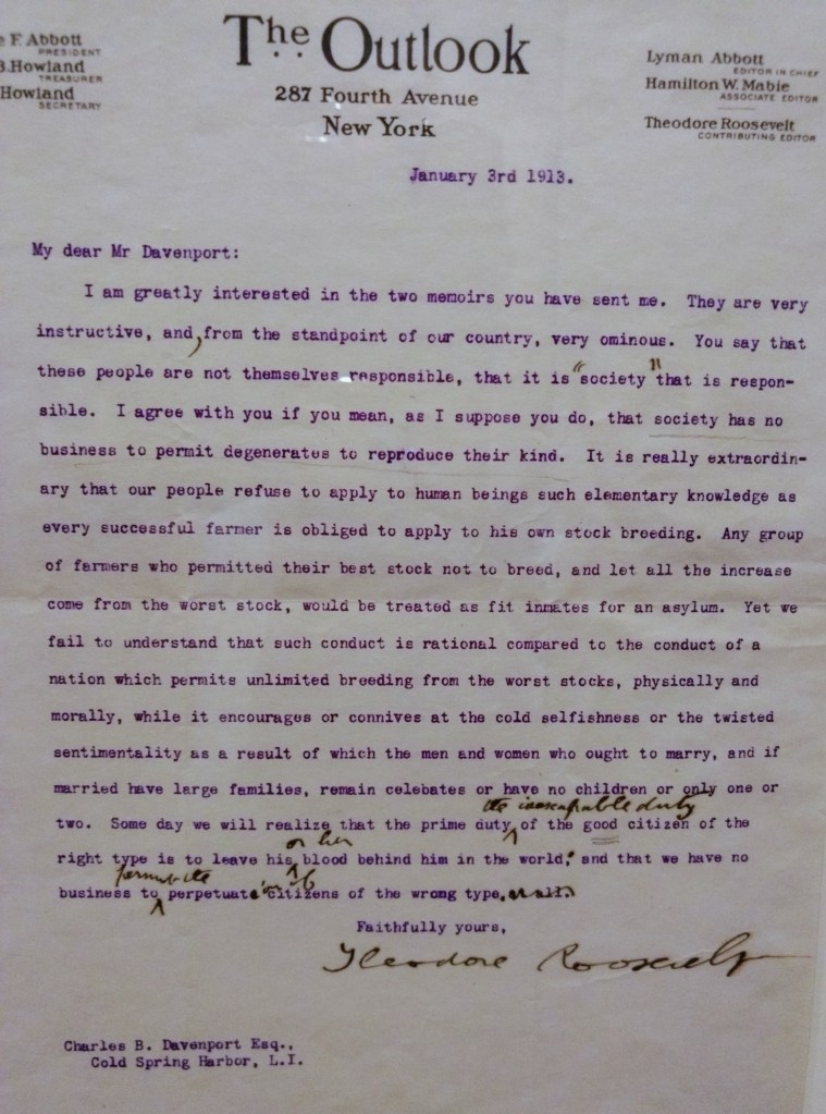 While the eugenics stuff is more than a little disturbing, especially from a child who along with two out of his three siblings had life-limiting physical ailments (Teddy: asthma, Anna: scoliosis, Elliot: epilepsy), despite this Teddy is by far my favorite president (although Eleanor is my favorite Roosevelt!).