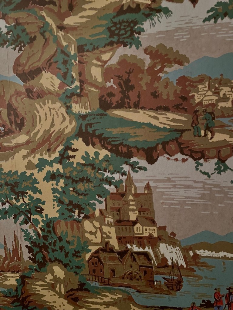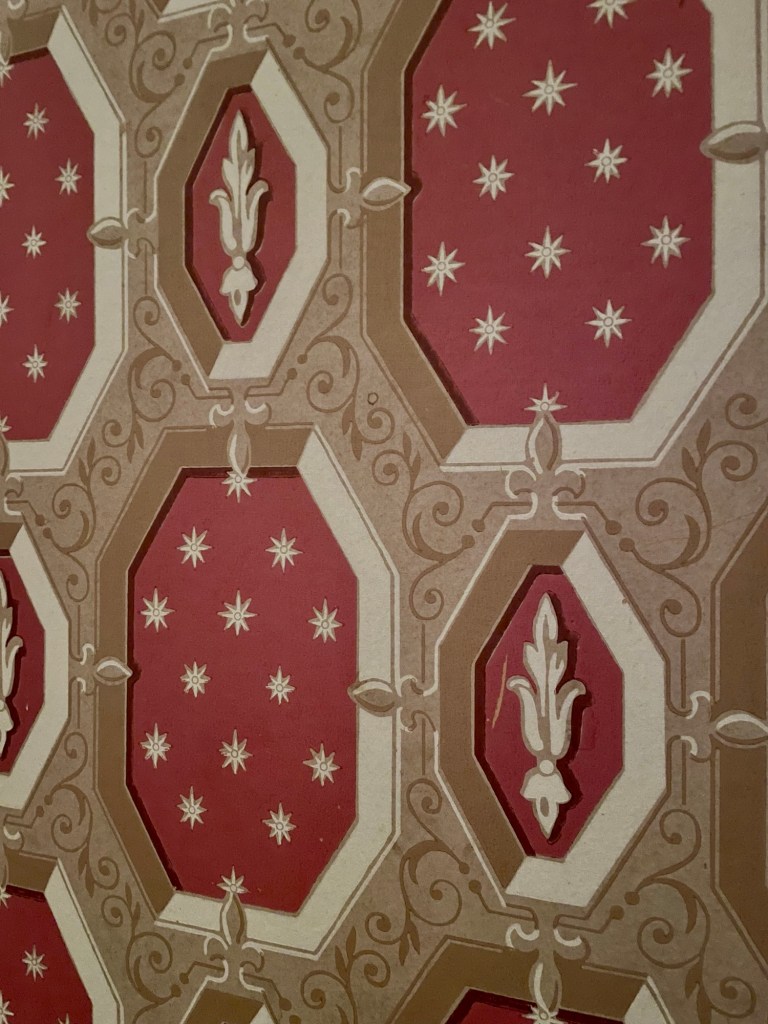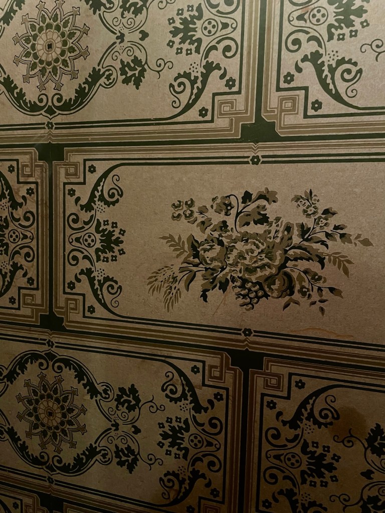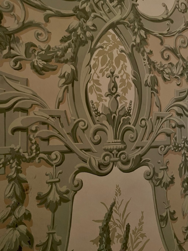 The company who designed the original wallpaper was still around at the time of the reconstruction and still had documentation of original sale, so all the wallpaper is historically accurate.