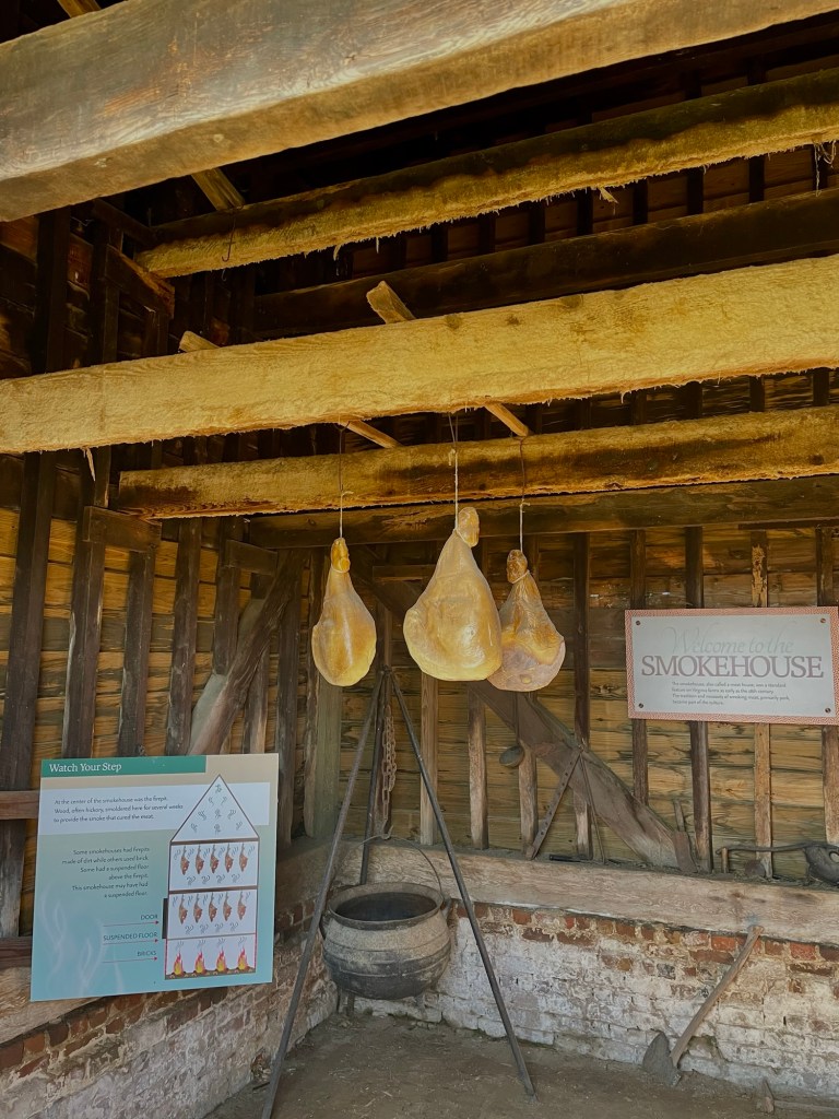 Besides seafood, this is the home of peanuts and country ham. While peanuts probably originated in South America, they were brought to the southern United States by enslaved Africans and by the late 1800’s Virginia was the nation’s leading producer. Virginia country ham is even older, dating back to the 17th century colony at Jamestown where colonists combined the European method of salt preservation with the Native American tradition of smoking. Plantations around the south always had a smokehouse on the grounds for just this purpose. Both of these local examples date back to the 1800’s.