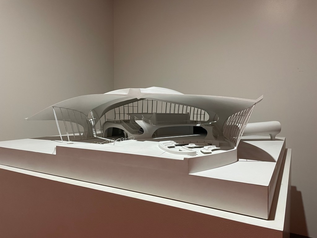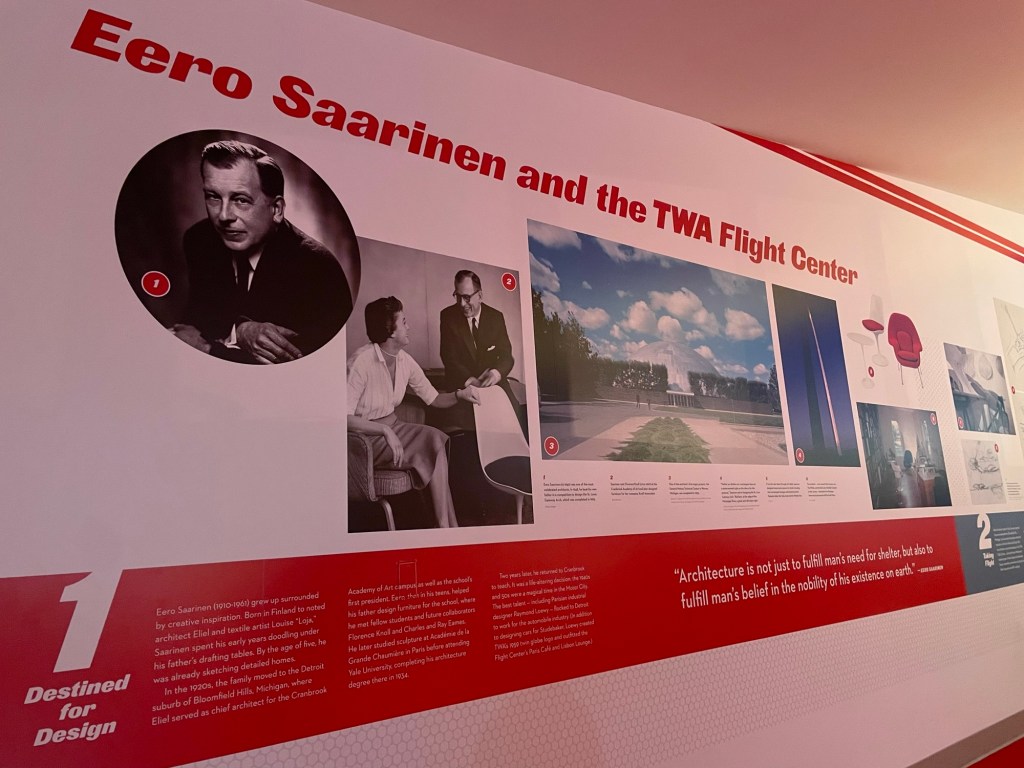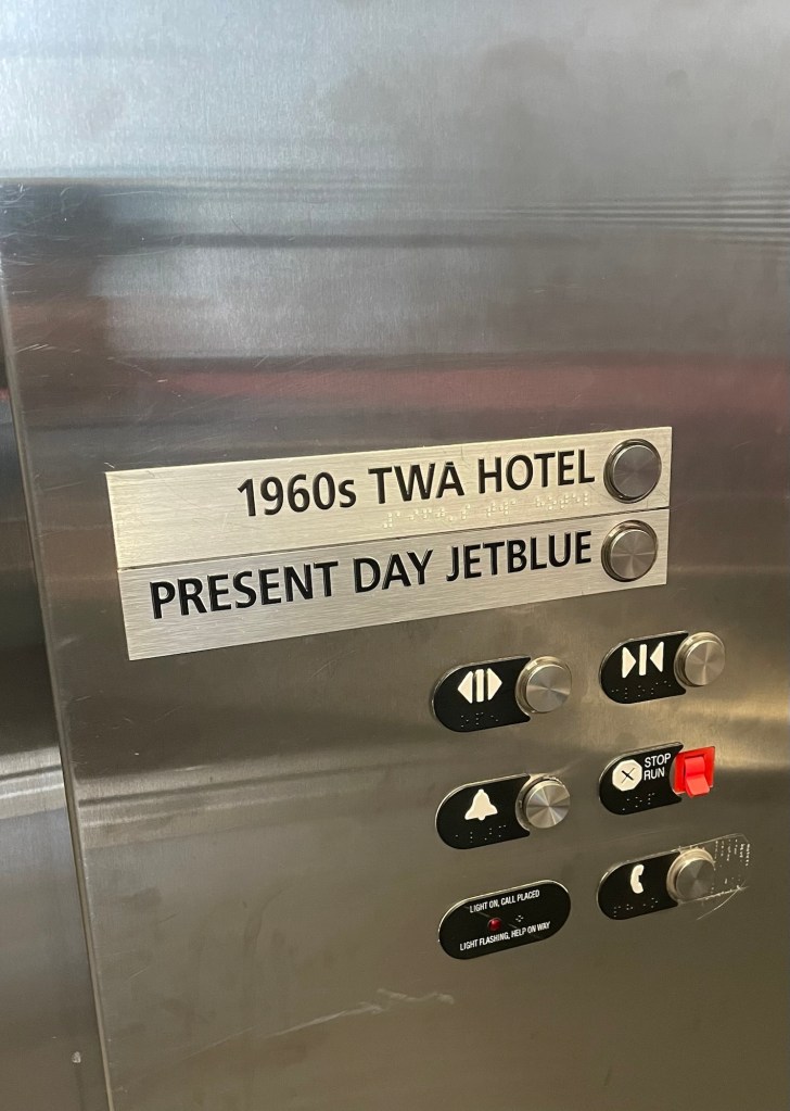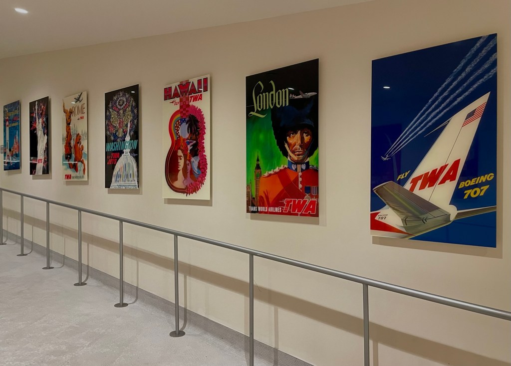 The building is full of TWA displays curated by The New York Historical Society. They include vintage TWA posters, uniforms, vehicles, architectural drawings and models.