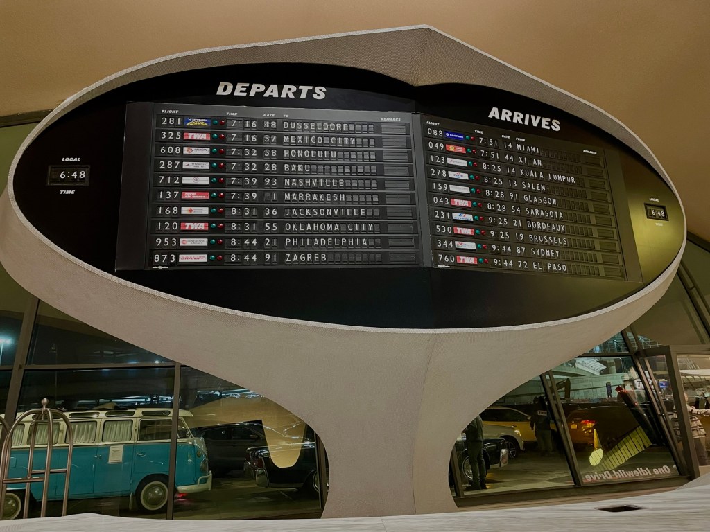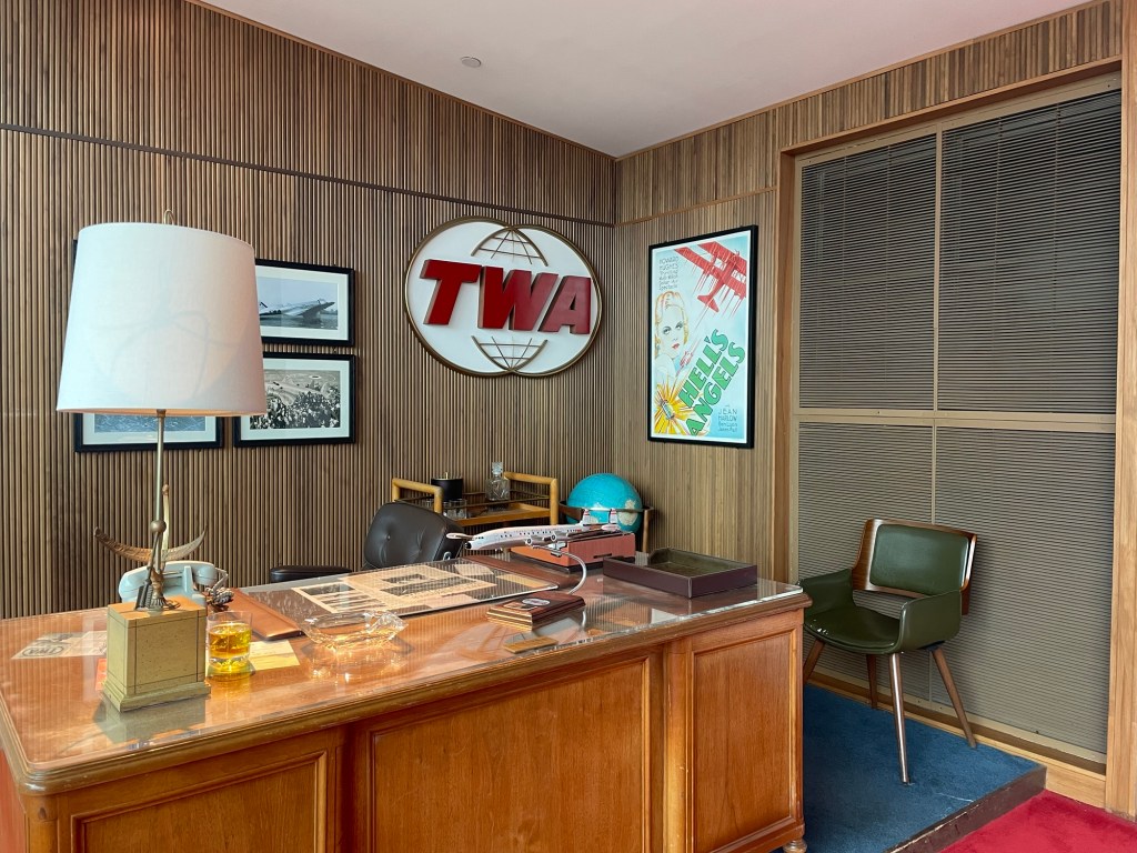 There are also hidden photo areas: a 60’s living room, a beauty salon and twister room, plus a recreation of the office of TWA owner Howard Hughes and exhibits about architect Eero Saarinen.