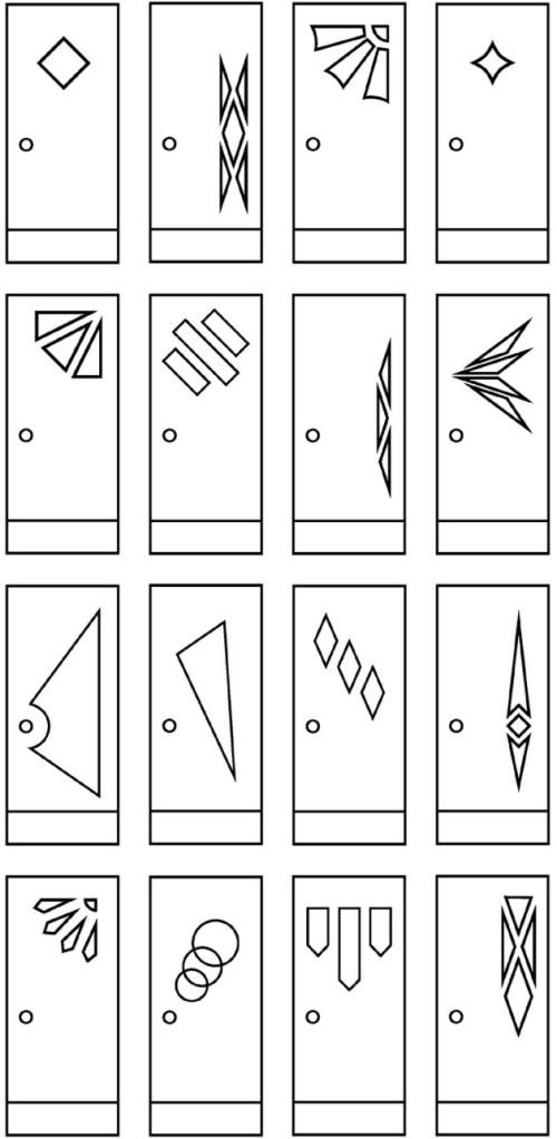 In the early years, Tofani doors were primarily colonial revival, and often contained fancy millwork and etched starburst glass produced locally by the H. Perilstein Glass Company founded in 1898.